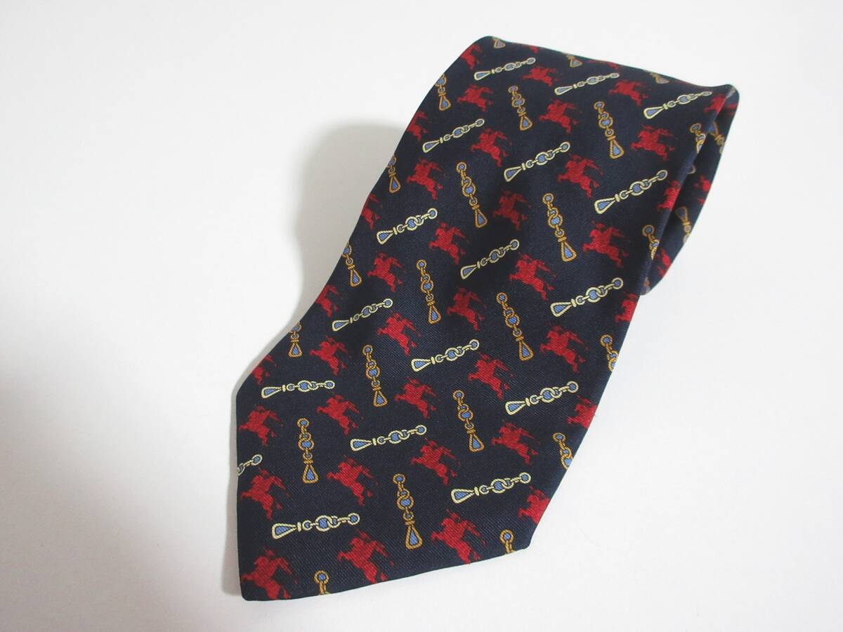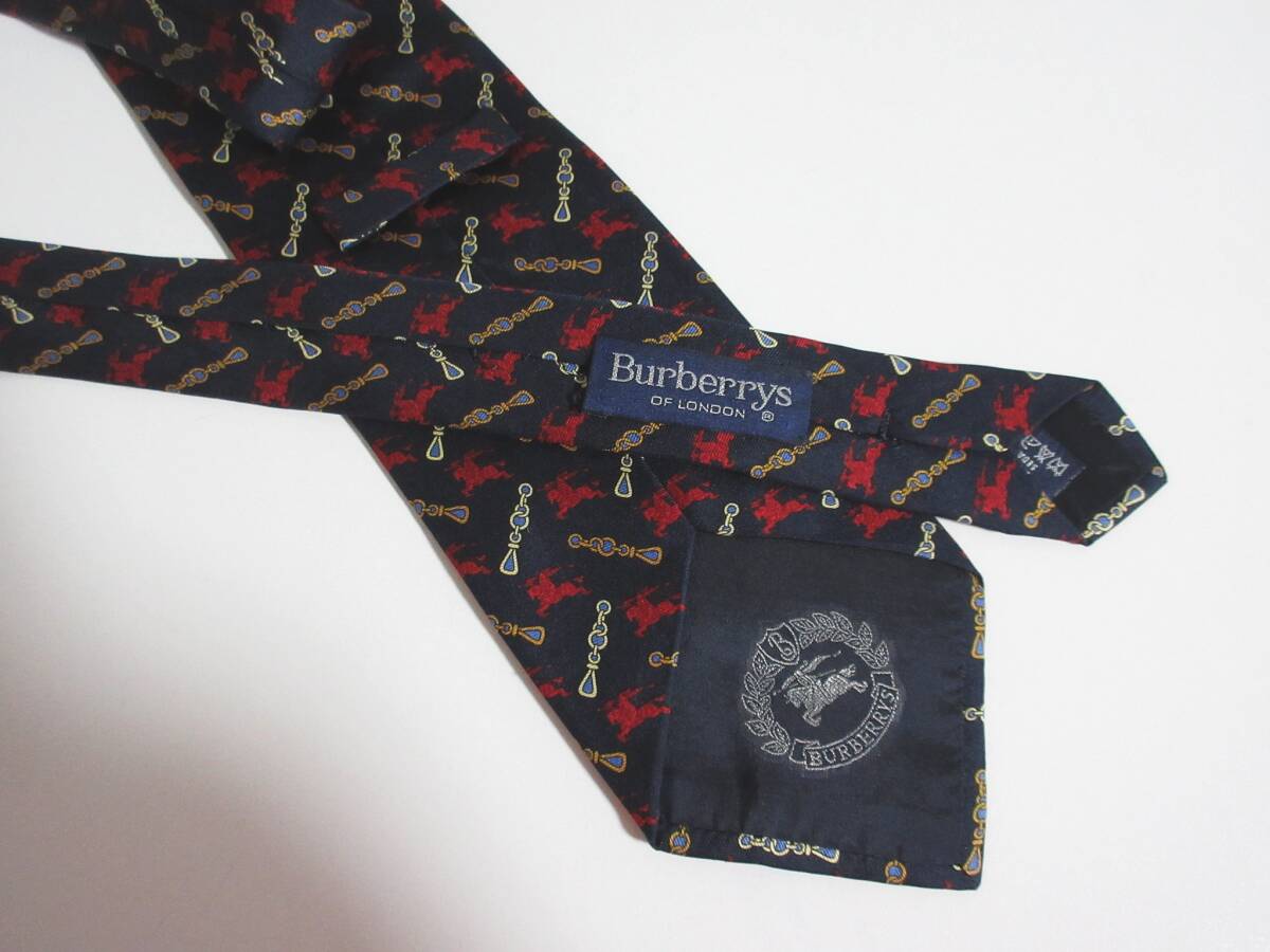 BURBERRY'S バーバリー 総ロゴ シルク ネクタイ ネイビー yg7008