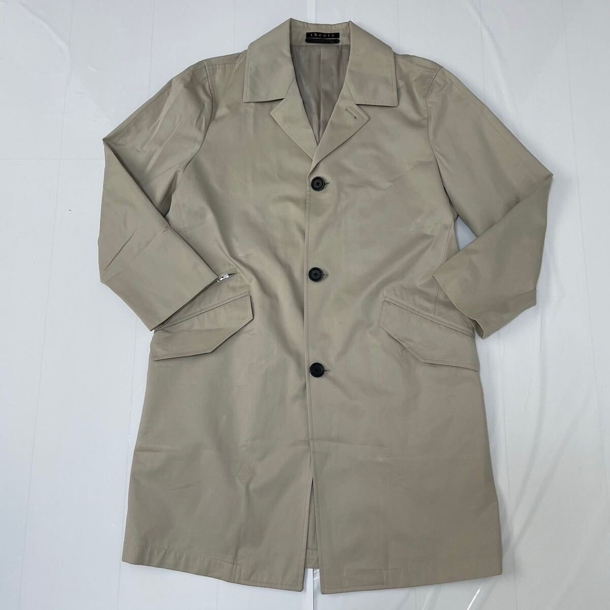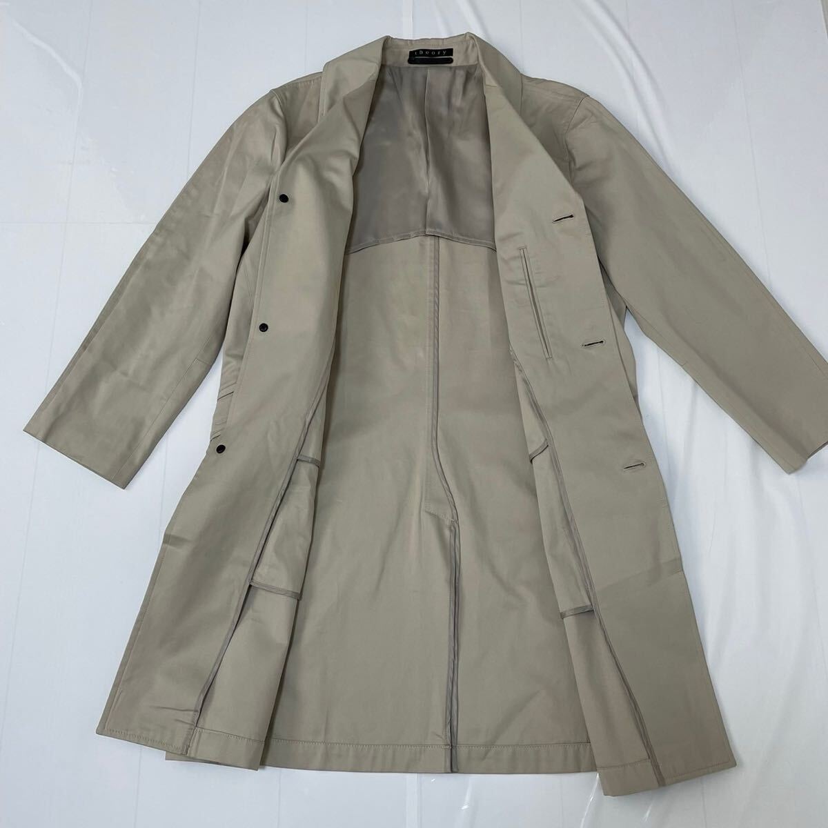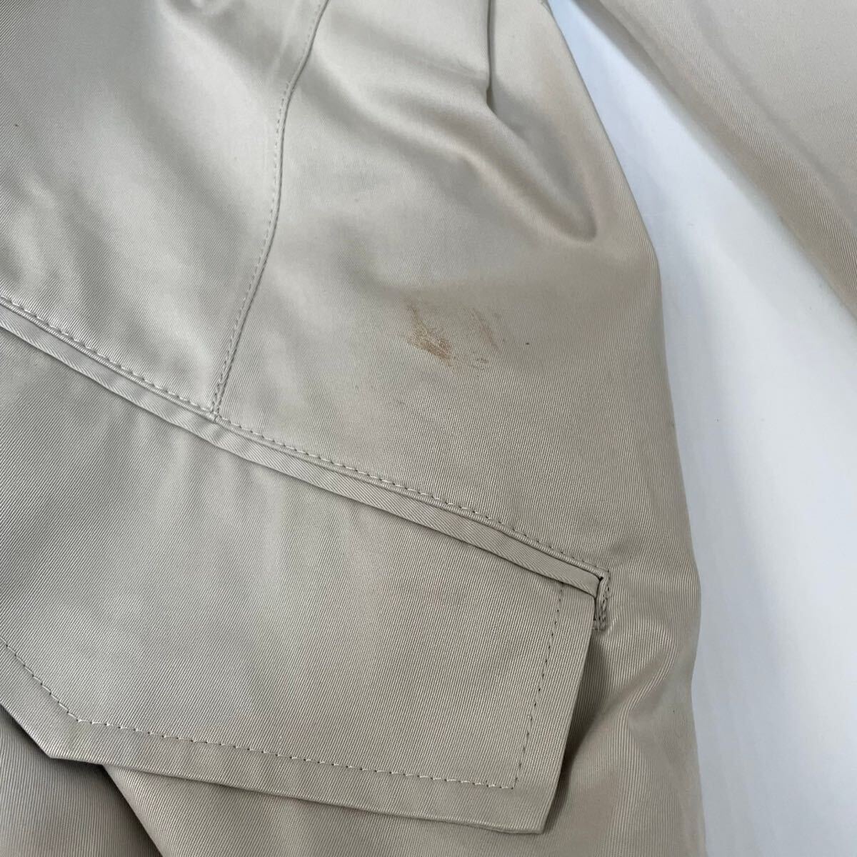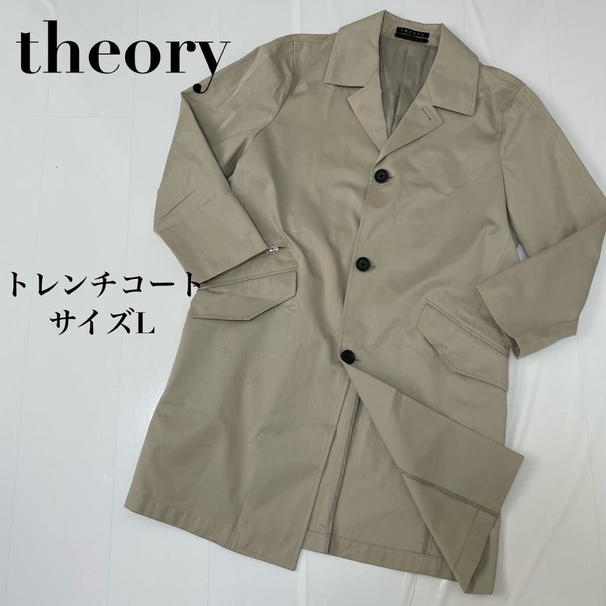 閲覧ありがとうございます!即購入大歓迎です♪ 【ブランド】 theory セオリー 【アイテム】 トレンチコート ジャケット 【表記サイズ】 サイズ2(Lサイズ相当) 肩幅:45cm 身幅:53cm 着丈:93cm 裄丈:77.5cm 袖丈:54cm 【素材】 コットン100% 【カラー】 ベージュ 【状態】 左ポケット上に一部に小さな汚れが見られますが、全体的には良好です。(画像 10 枚目をご確認ください。) その他大きなダメージは見当たりません 【商品管理番号】 240901-03 スムーズで気持ちの良いお取引のために、誠心誠意ご対応させて頂きますので、どうぞよろしくお願い致します☆