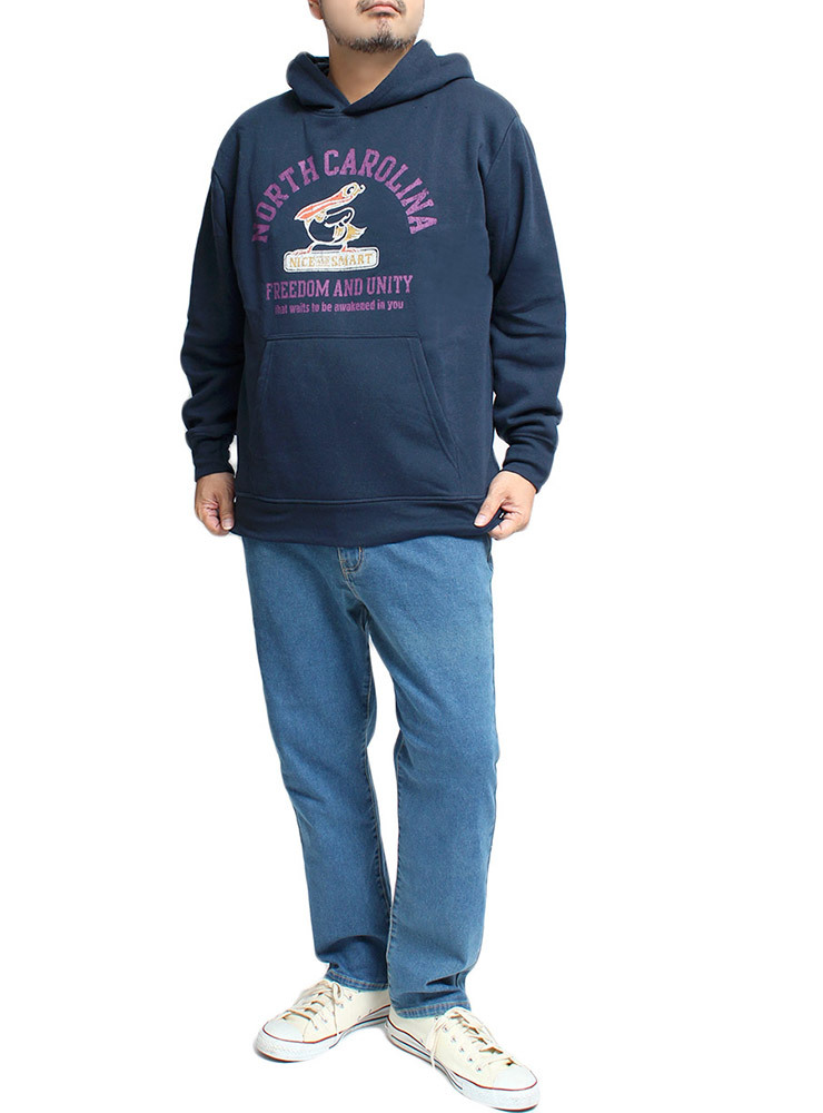 商品名 | 【新品】 4L ネイビーB カレッジ パーカー メンズ 大きいサイズ 裏起毛 プルオーバー スピンドルネック カレッジ アウトドア ミリタリー クレイジー プリント スウェット |