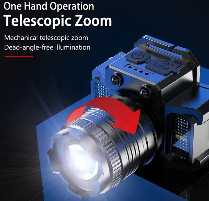 LEDヘッドランプ HXP50 +COB 高輝度 5モードセンサー機能 360度角度調整可能 IPX44防水 スマホ充電可能!