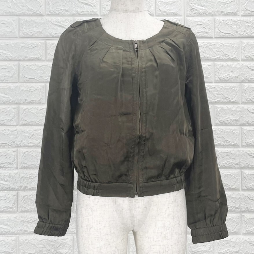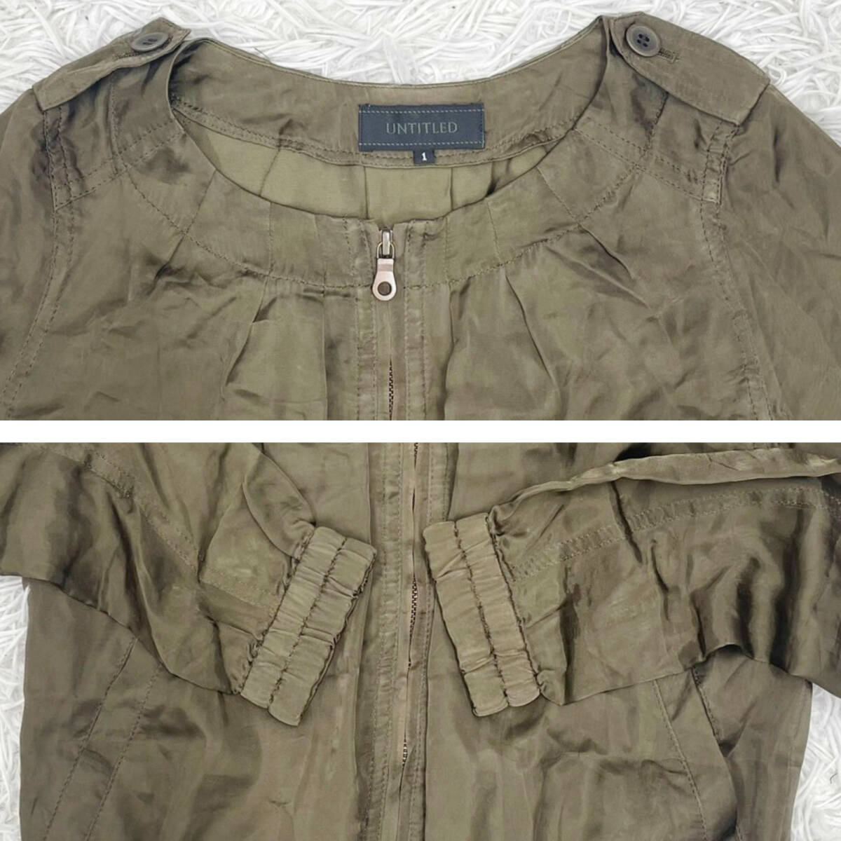 【A3609】UNTITLED アンタイトル ブルゾン レディース ノーカラーブルゾン 長袖 カーキ ジップアップ シンプル カジュアル 春秋 Sサイズ
