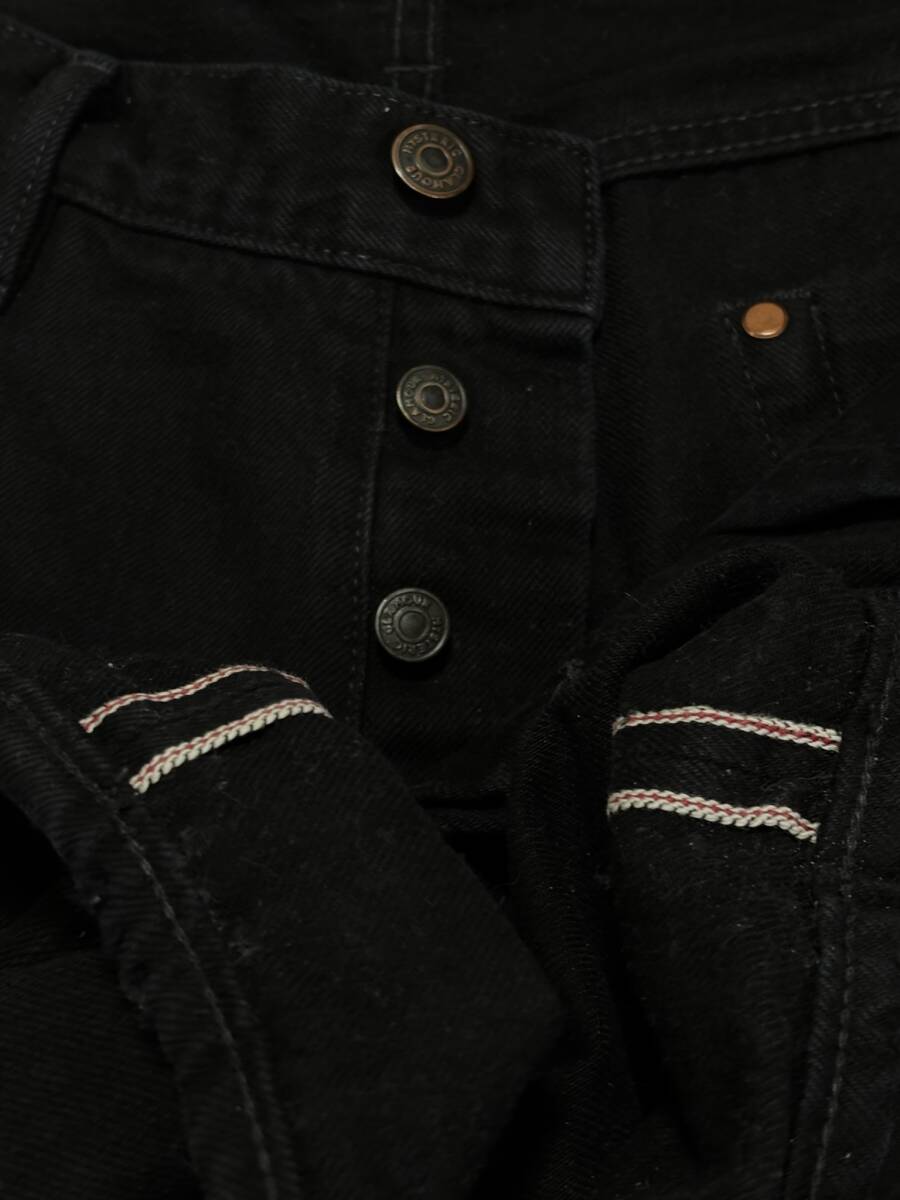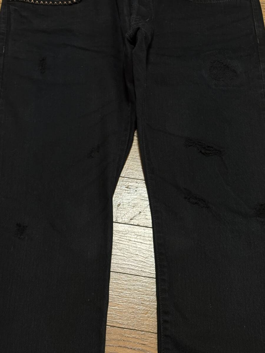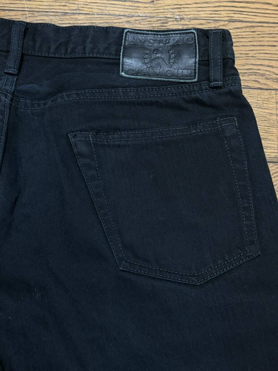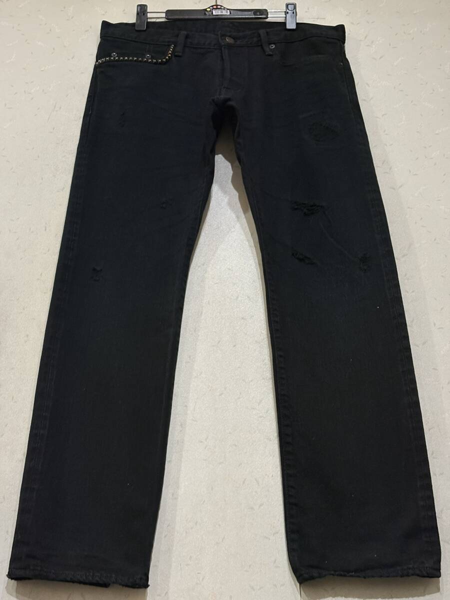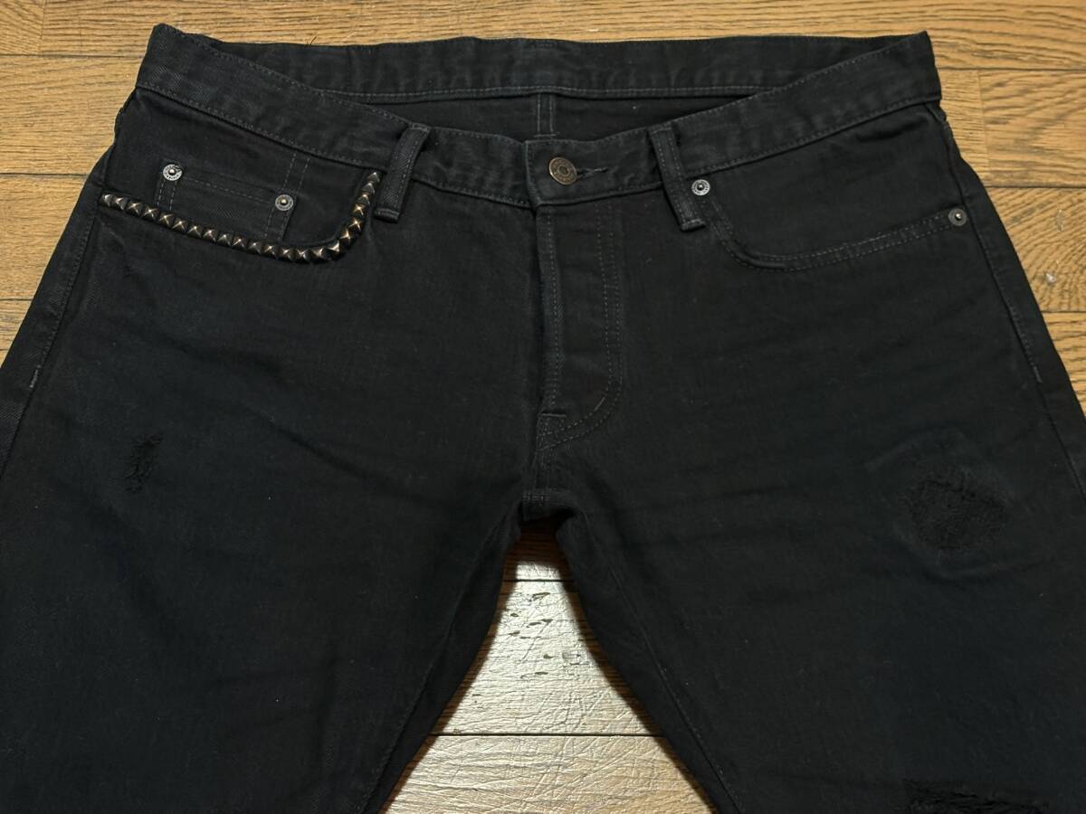 HYSTERIC GLAMOUR ヒステリック グラマー ダメージ加工&リペア加工セルビッチ スタッズ デニムパンツ 未裾直 ブラック 日本製 34       BJBE.D