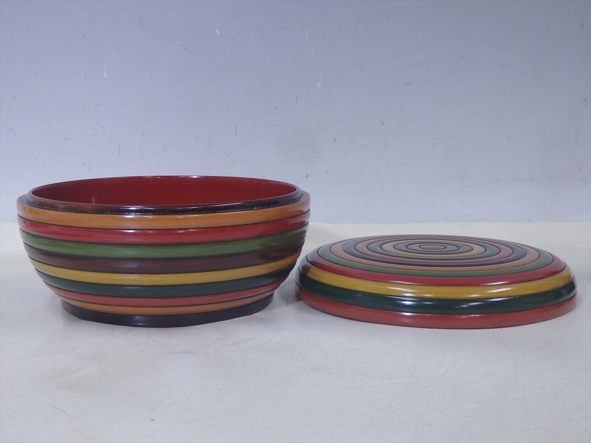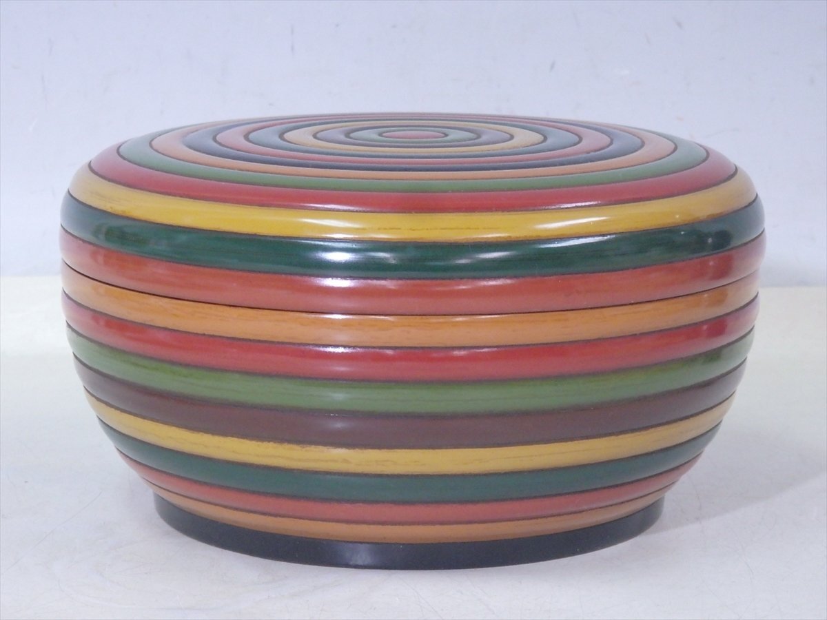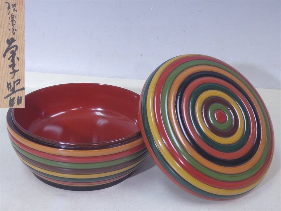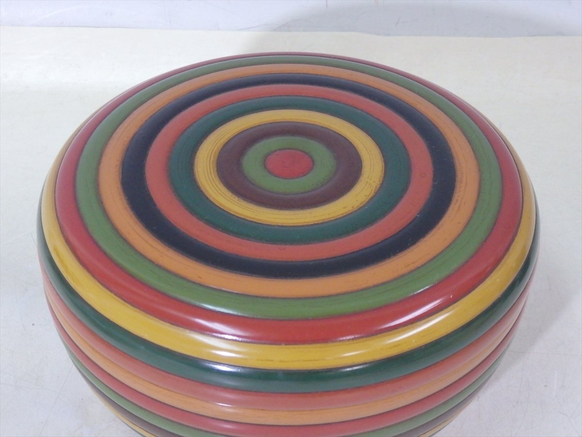 ★讃岐【独楽塗菓子器 木箱入り】天然木 子どものコマに似せた塗り 直径20.5×高さ11cm 茶道具 茶器 漆器