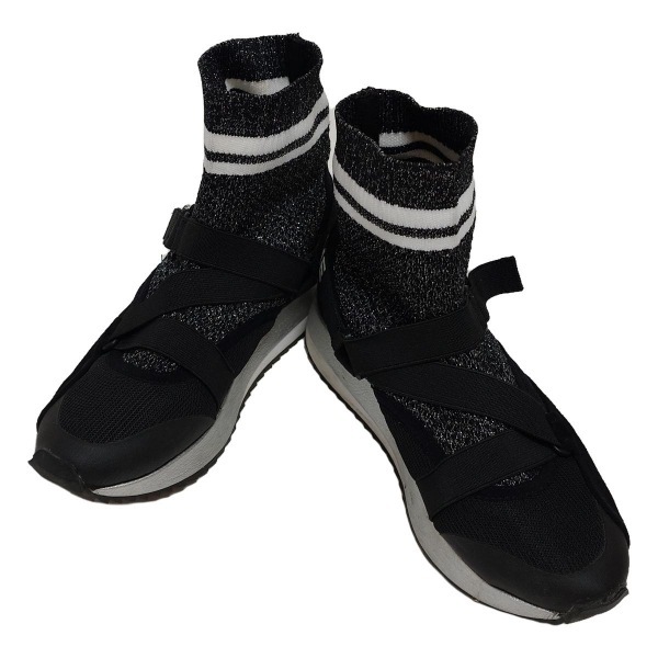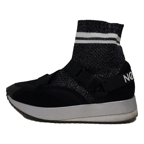 ノーネーム NONAME ショートブーツ - 黒×白×シルバー レディース ラメ 靴