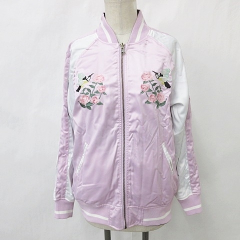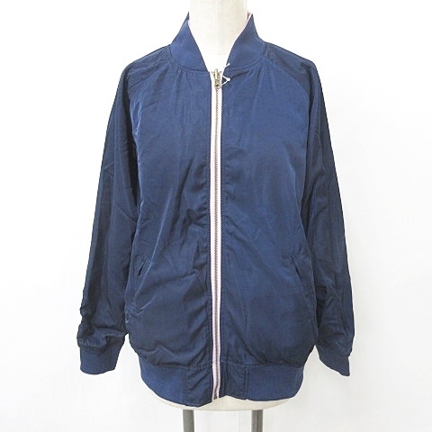 未使用品 アロー a.r.w ARROW ブルゾン ジャンバー ジップアップ 2WAY リバーシブル 刺繍 リブ 紺 ピンク ネイビー F レディース