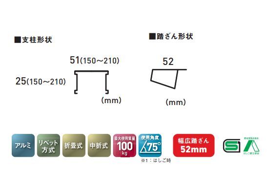 使用角度 | 75° | はしご等での昇降面の立て掛け角度です。 |