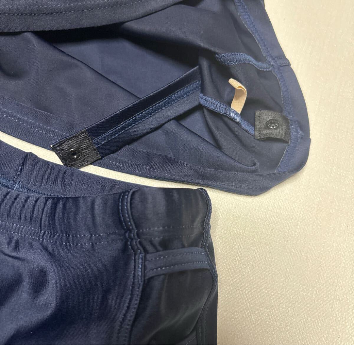 ・ずり上がらないように上下を繋げるボタン式の紐付き