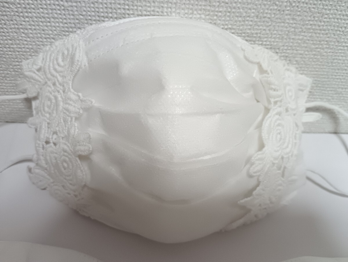 ☆ハンドメイド☆白色花柄プリント生地☆大人用立体マスクカバー 3枚セット☆不織布マスクカバー☆白色レース☆