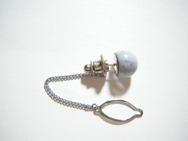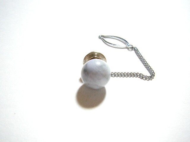 ★天然石 ストーン グレー系 17mm タイピン タイタック シルバーカラー【AZ38】