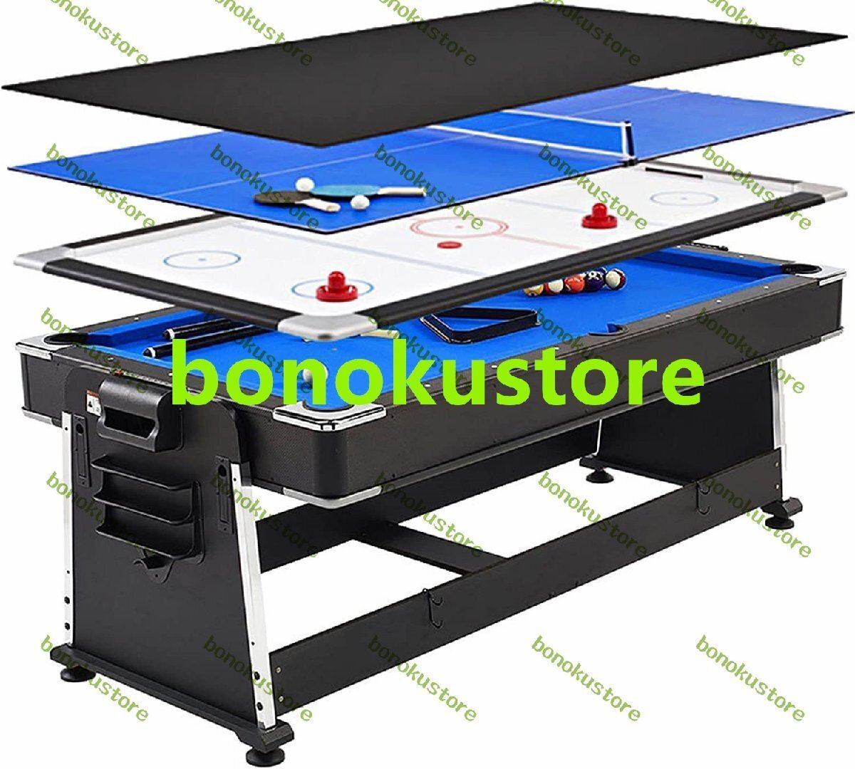 WJW 4イン1コンビネーションテーブル、ファミリーマルチゲームテーブル - 7フィートのビリヤード/ビリヤード台+エアホッケー+テニステーブル+ディナーテーブル、屋内スポーツ、ゲームルーム、バー、パーティー用 B