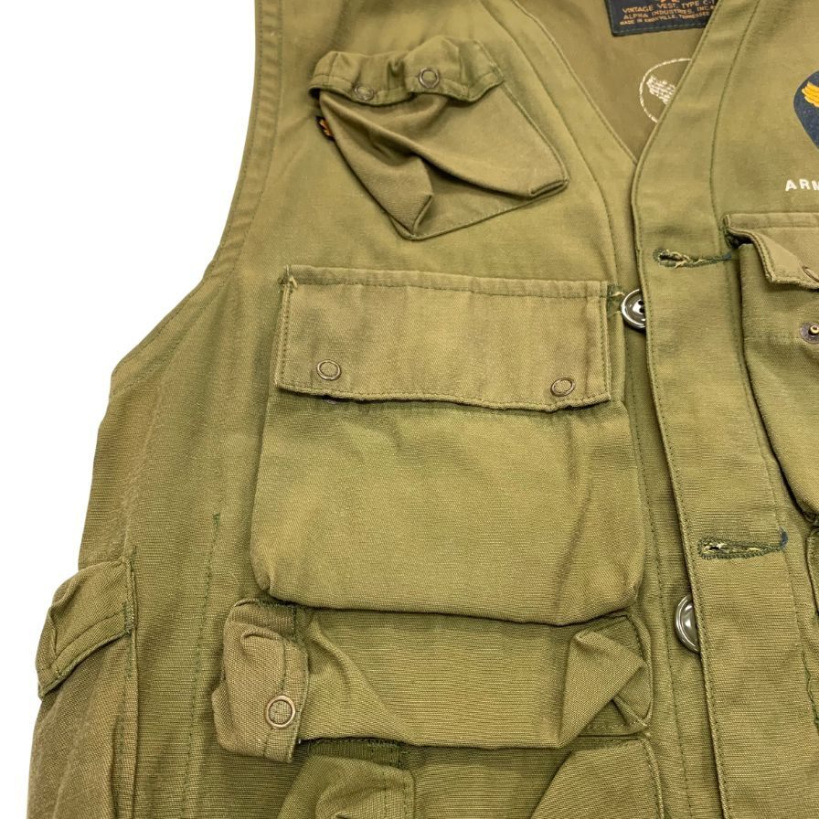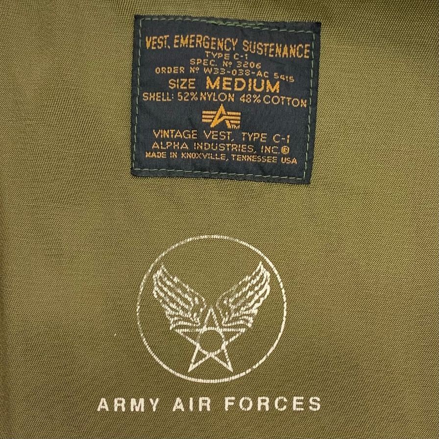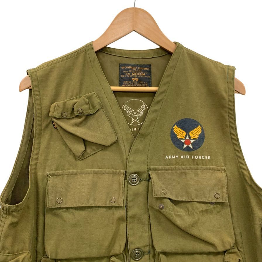 中古◆ベスト・ジレ アルファインダストリーズ ベスト C-1 ヴィンテージ アーミー カーキ メンズ サイズM ALPHA INDUSTRIES 【AFB51】