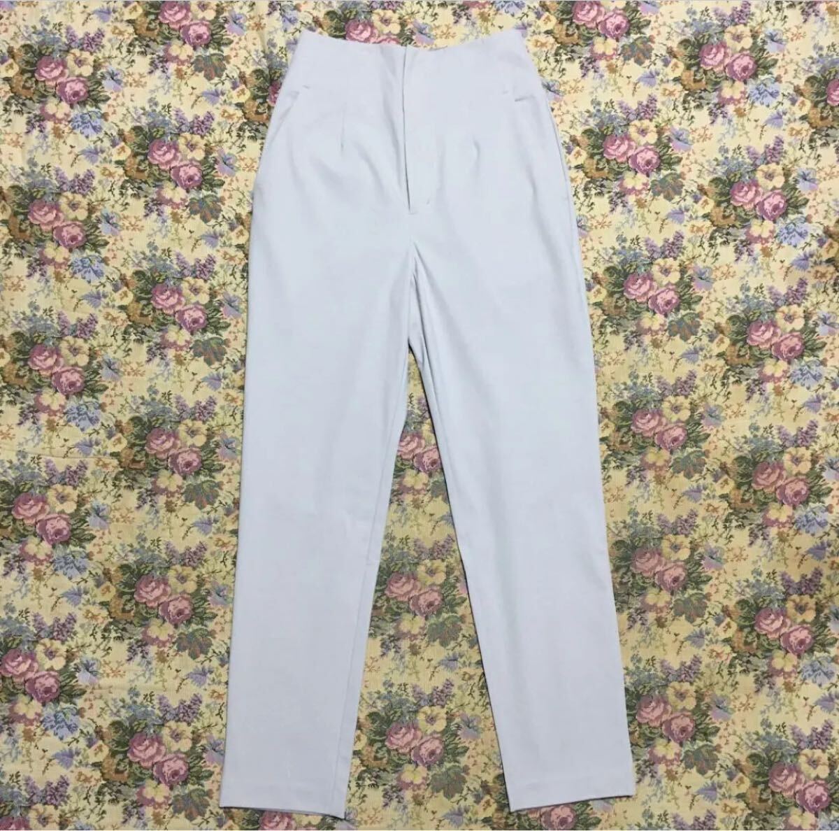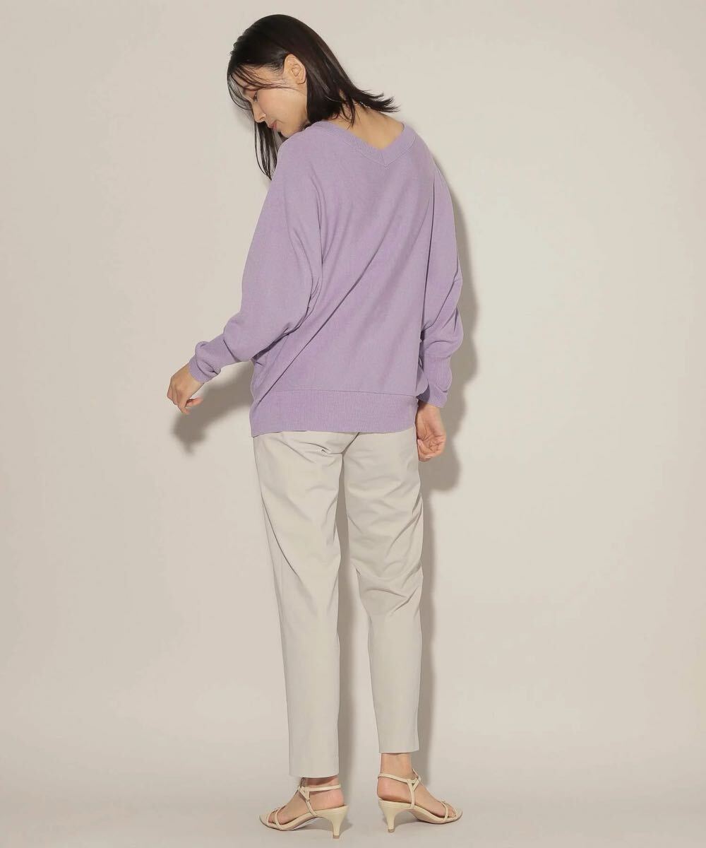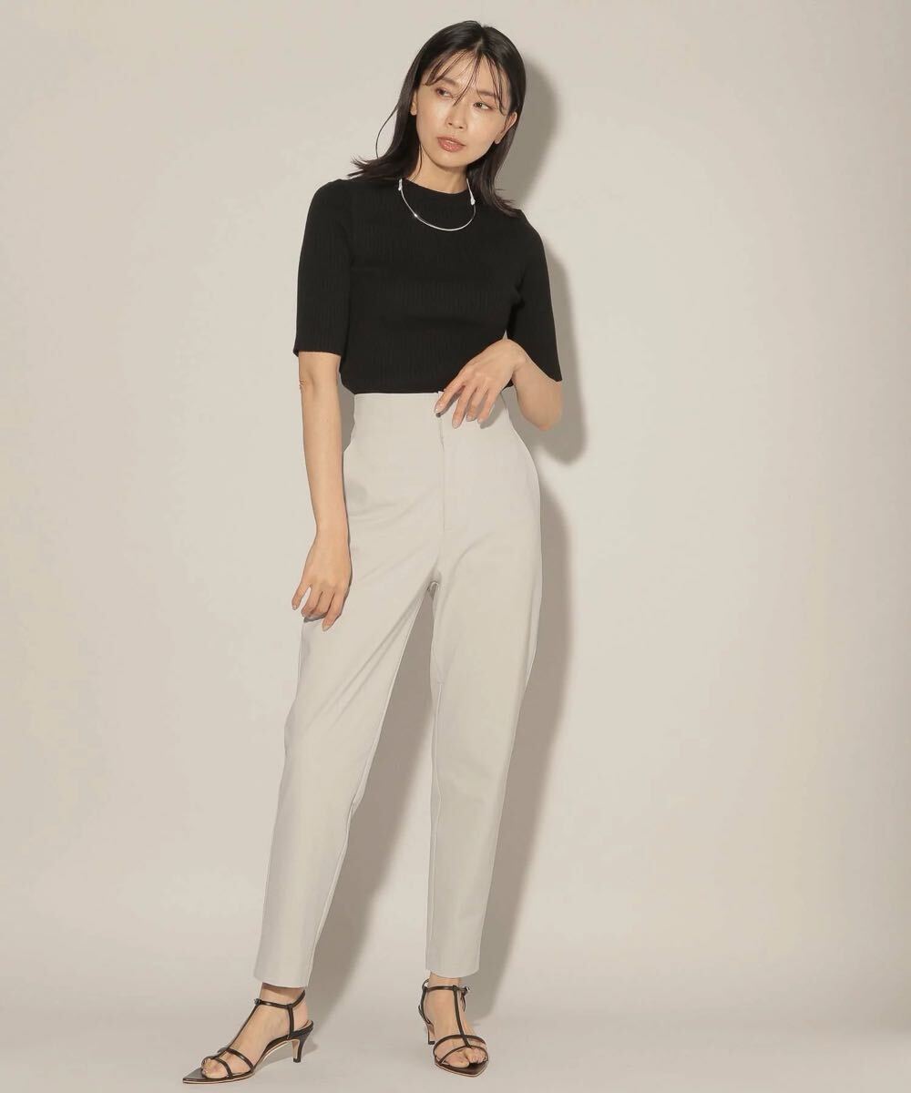 綺麗にオンスタイルで履けるテーパードパンツハイウエストのベルトレスなデザイン。伸縮性のある素材で後ろのウエスト部分にはゴムを入れているので着用しやすくなっています。【スタイリング】ボリュームのあるブラウスと合わせるとメリハリのあるスタイリングになります。足首を見せて、ヒールやサンダルを合わせた抜け感のあるスタイルもおすすめです。【素材感】ジョーゼットのような表面感のジャージ素材。