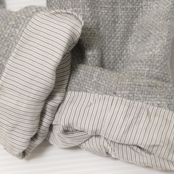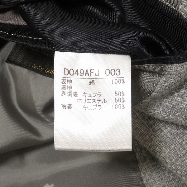 | コンディション備考 | 全体各所に毛羽立ち、首周り内側と両袖口裏地に汚れ、前身頃第1ボタンホールに広がりがございます。ご購入はご了承頂ける方にお願い致します。また保管によるシワはご容赦下さい。 |