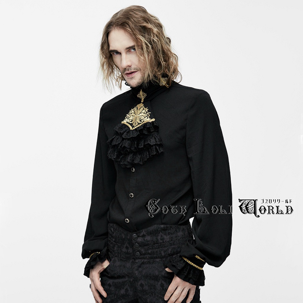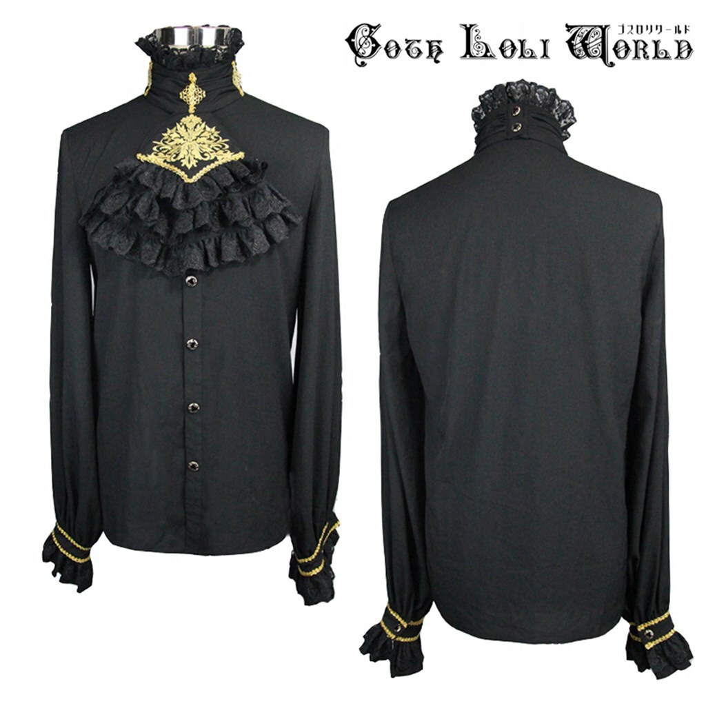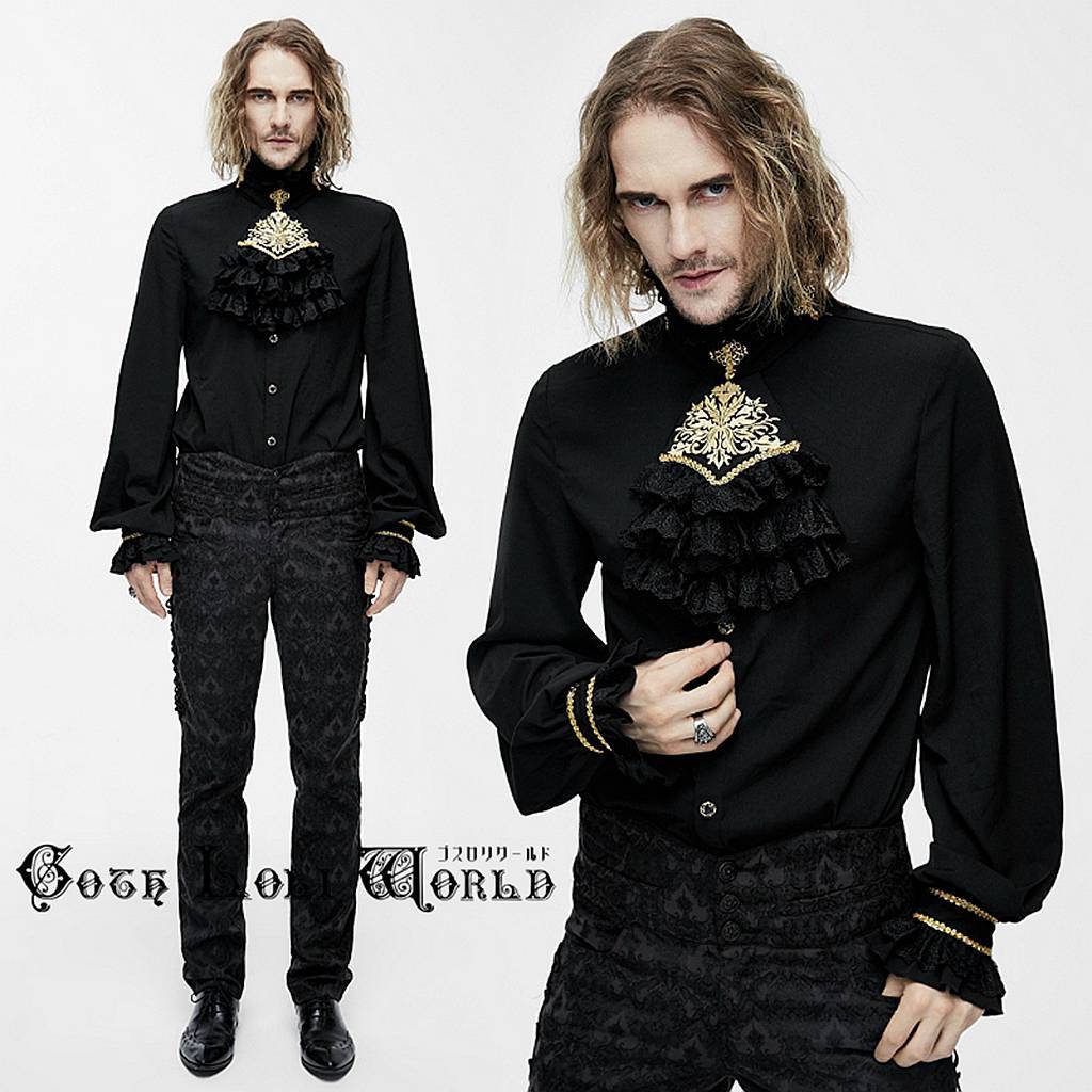 SHT02301-XL ゴシックファッション ジャボ風ゴールドエンブロイダリー 黒 ブラウス ゴスロリワールド ゴシック ロック ビジュアル系 V系