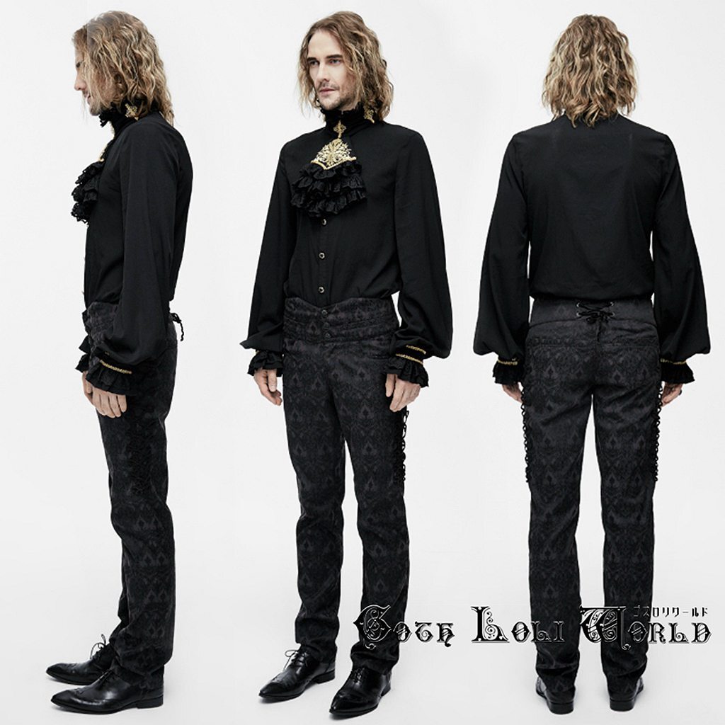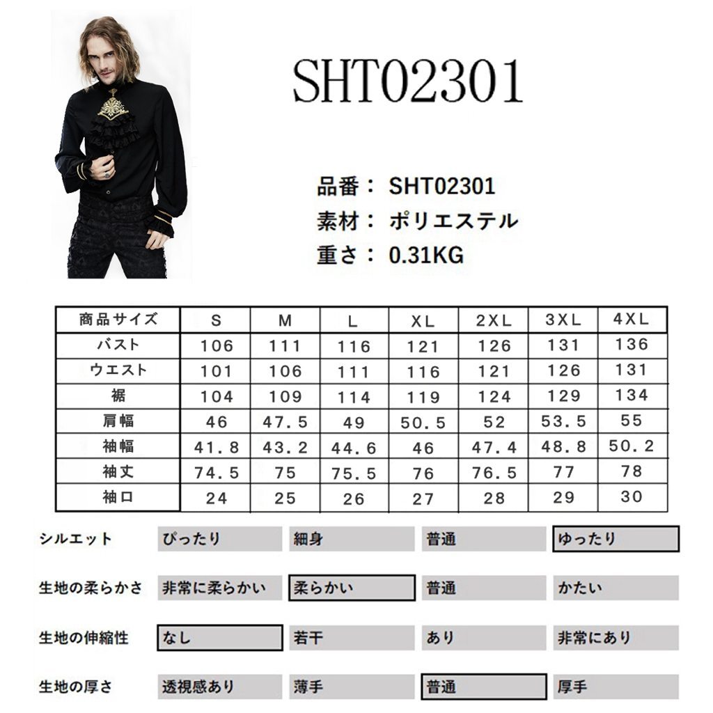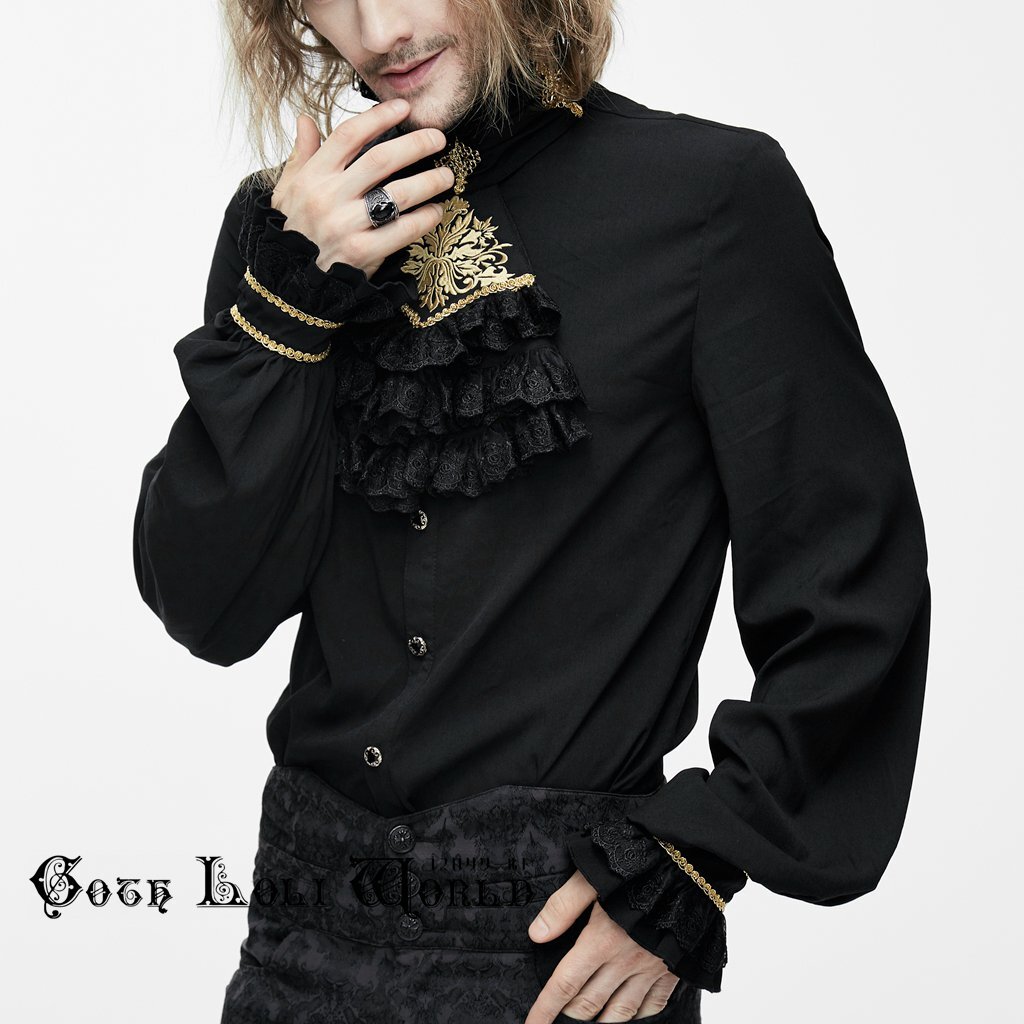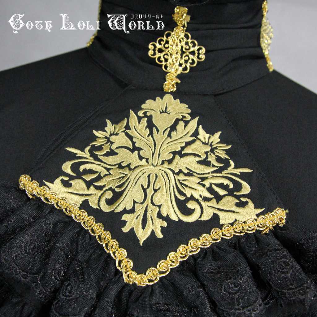 SHT02301-XL ゴシックファッション ジャボ風ゴールドエンブロイダリー 黒 ブラウス ゴスロリワールド ゴシック ロック ビジュアル系 V系