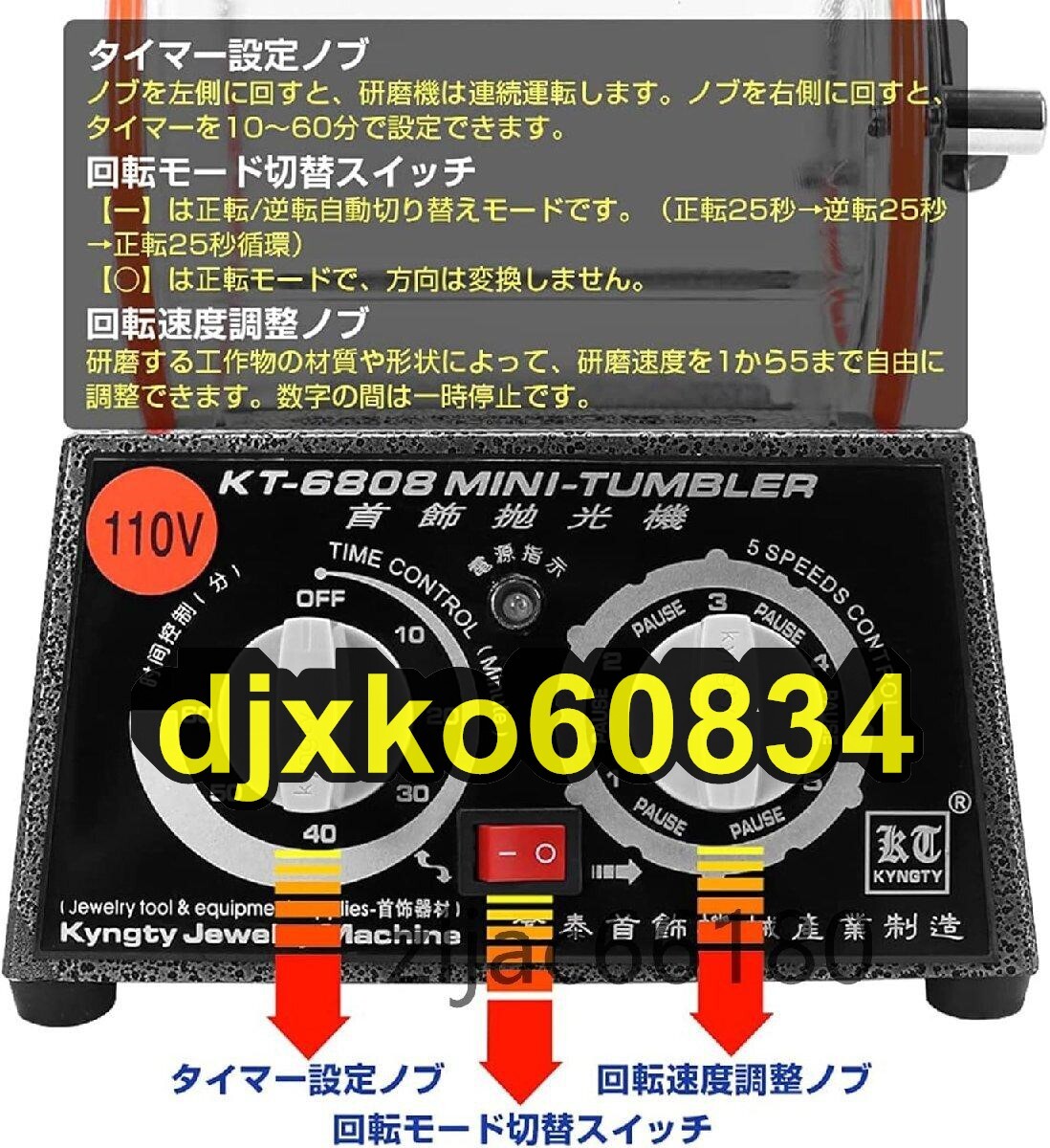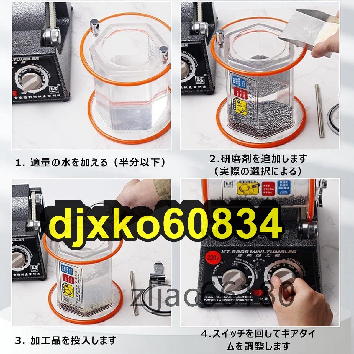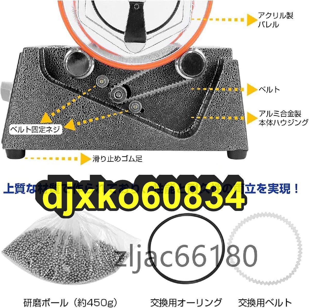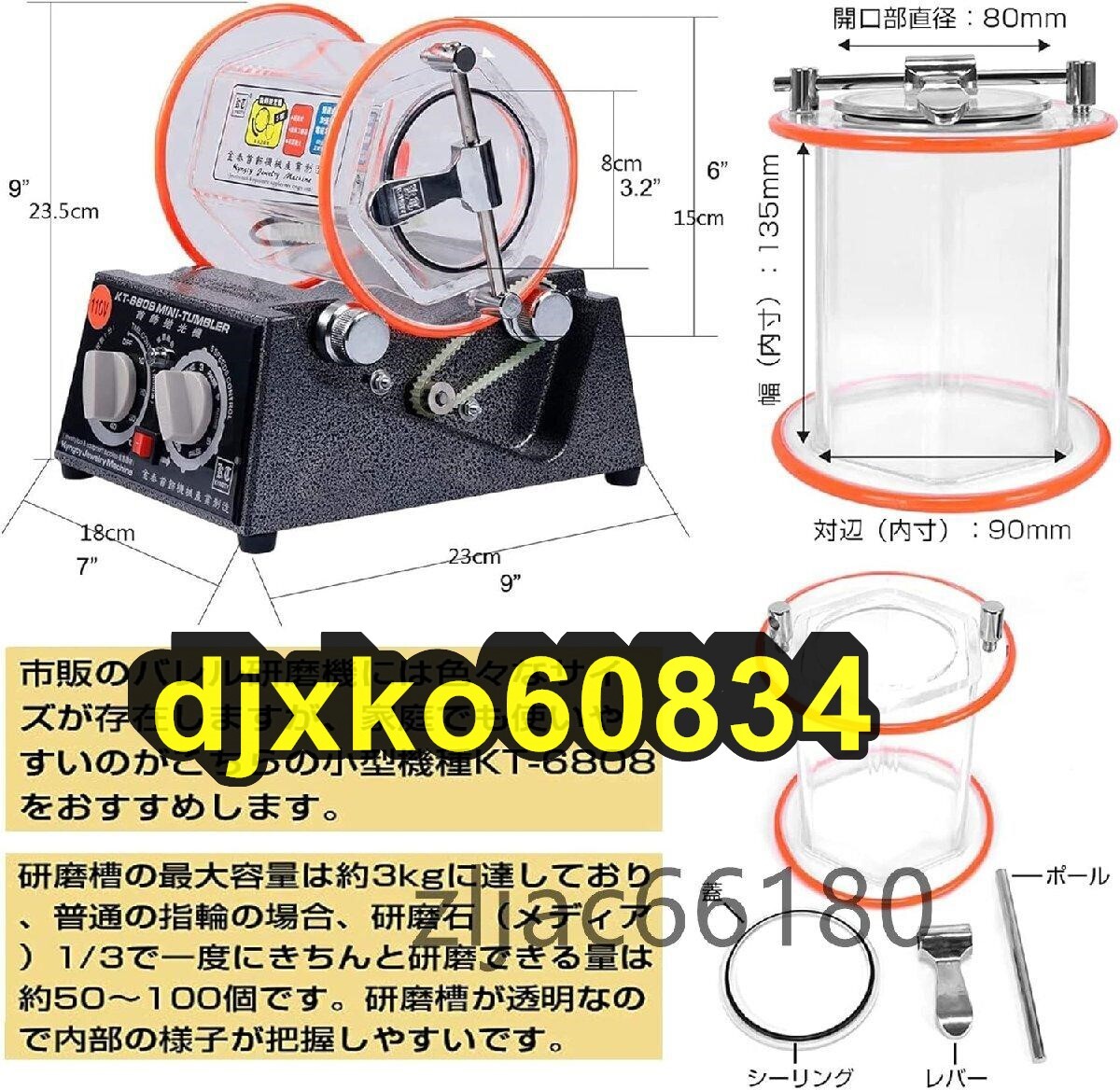 状態:新品未使用 【面倒な研磨作業を自動化】工作物の研磨作業を自動化する回転バレル研磨機です。研磨槽の中に研磨石(メディア)と工作物を入れて回転させることで、工作物は研磨石とぶつかり合い研磨加工されます。 【多用途対応】基本的に金属、樹脂、石、ガラスなどの硬いワークに対応しており、研磨石(メディア)やコンパウンドなどを使い分けることで、バリ?サビ取りから表面研磨の粗仕上げ?光沢仕上げ?鏡面仕上げまで対応します。 【最大容量3kg】市販のバレル研磨機には色々なサイズが存在しますが、家庭でも使いやすいのがこちらの小型機種KT6808をおすすめします。研磨槽の最大容量は約3kgに達しており、普通の指輪の場合、研磨石(メディア)1/3で一度にきちんと研磨できる量は約50~100個です。研磨槽が透明なので内部の様子が把握しやすいです。 【速度5段調整可能?タイマー付】研磨する工作物の材質や形状によって、研磨速度を1から5まで自由に調整できます。さらに、正転/逆転の切り替え機能を搭載しており、「正転/逆転自動切り替えモード」と「正転モード」から選択可能です。便利なタイマー付き、10~60分で設定できます。 【耐久性抜群】上質なアクリル製研磨槽とアルミ合金製本体ハウジングで、耐久性に優れています。研磨ボール(約450g)、交換用のベルトとオーリングが付属しますので、別途購入する必要はありません。店舗をご確認ください:はちまん店、他の同デザインは全て海賊版でございます、品質は保証されていません、慎重に購入してください。