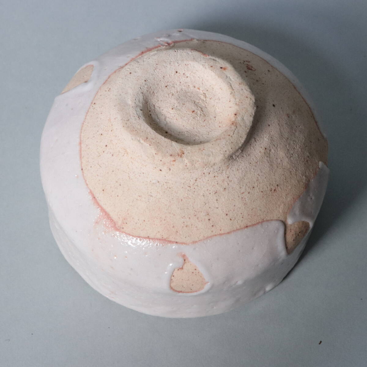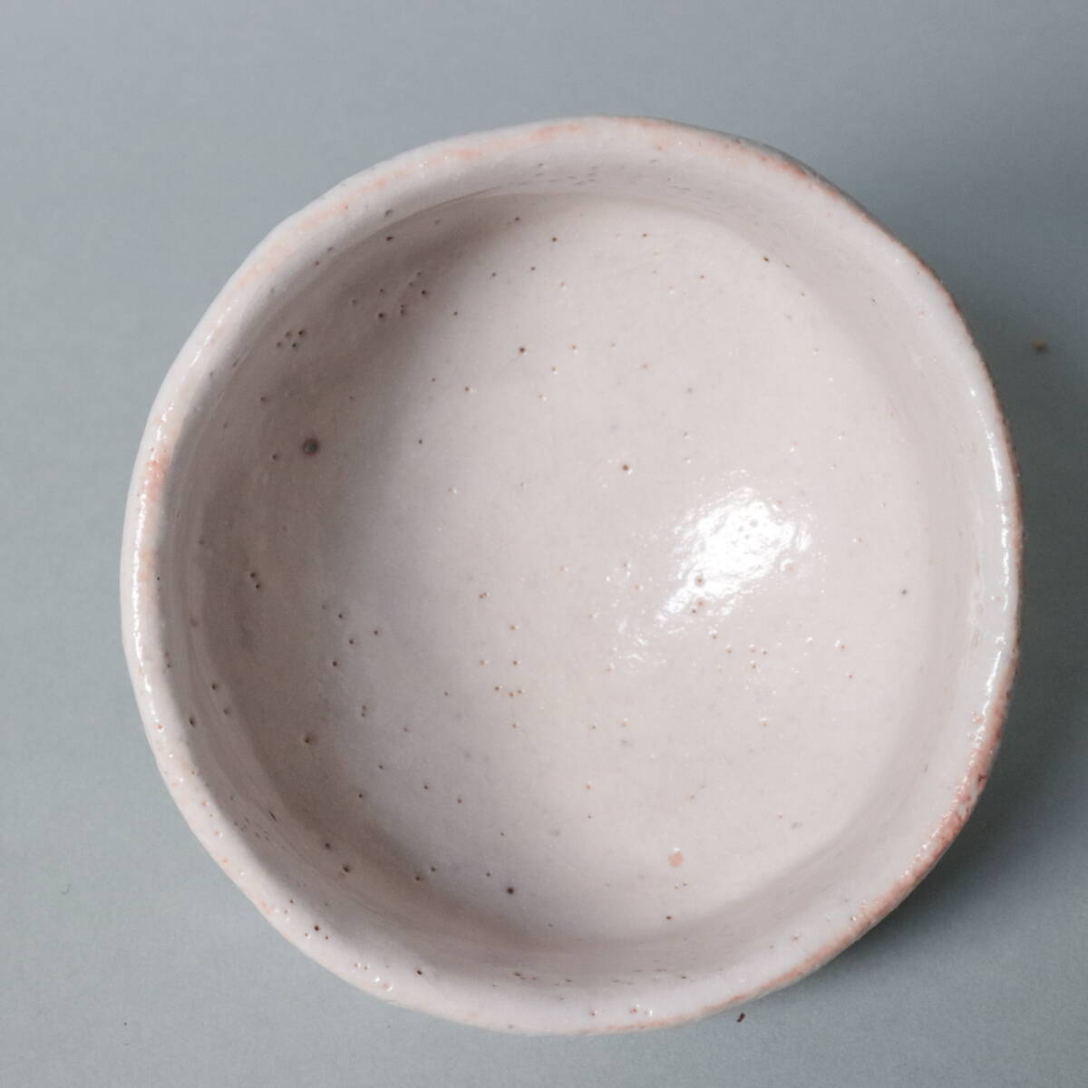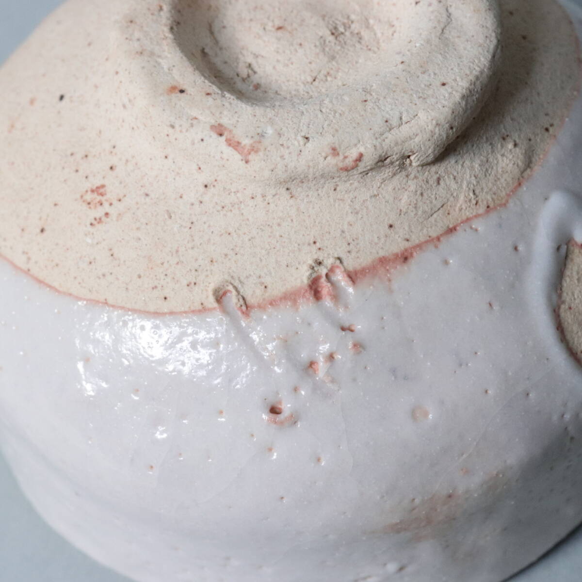 妙陶房にて制作された本作は、柔らかな曲線を持つ手捻りの造形に、やさしい白釉が施された作品で、志野を思わせる味わい深い表情を見せています。