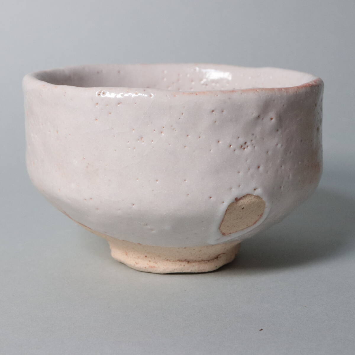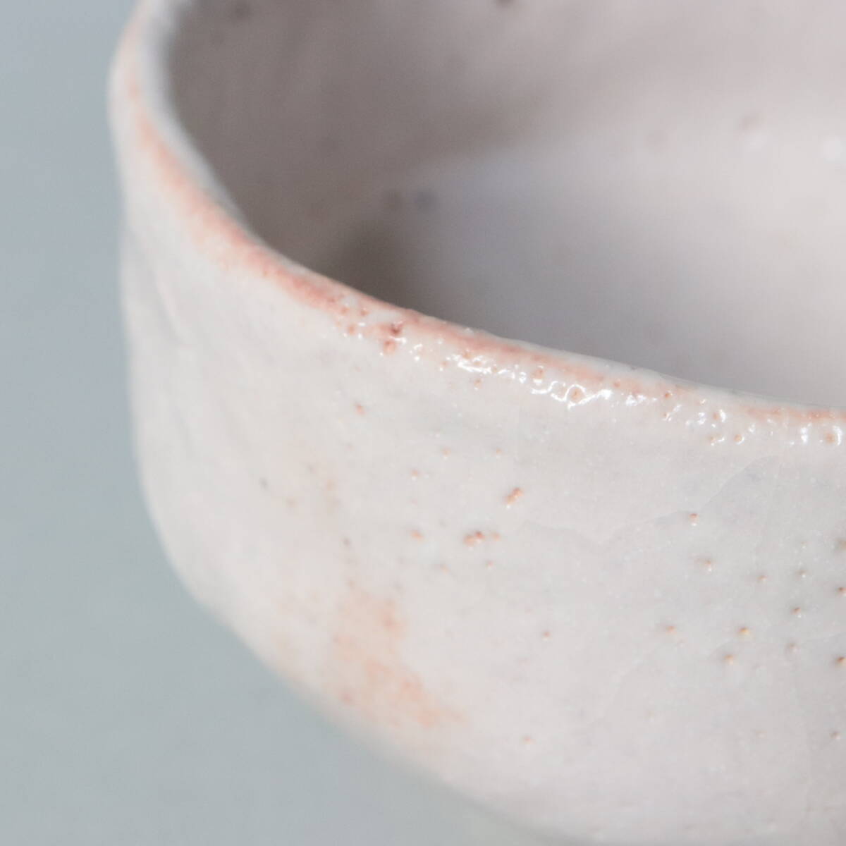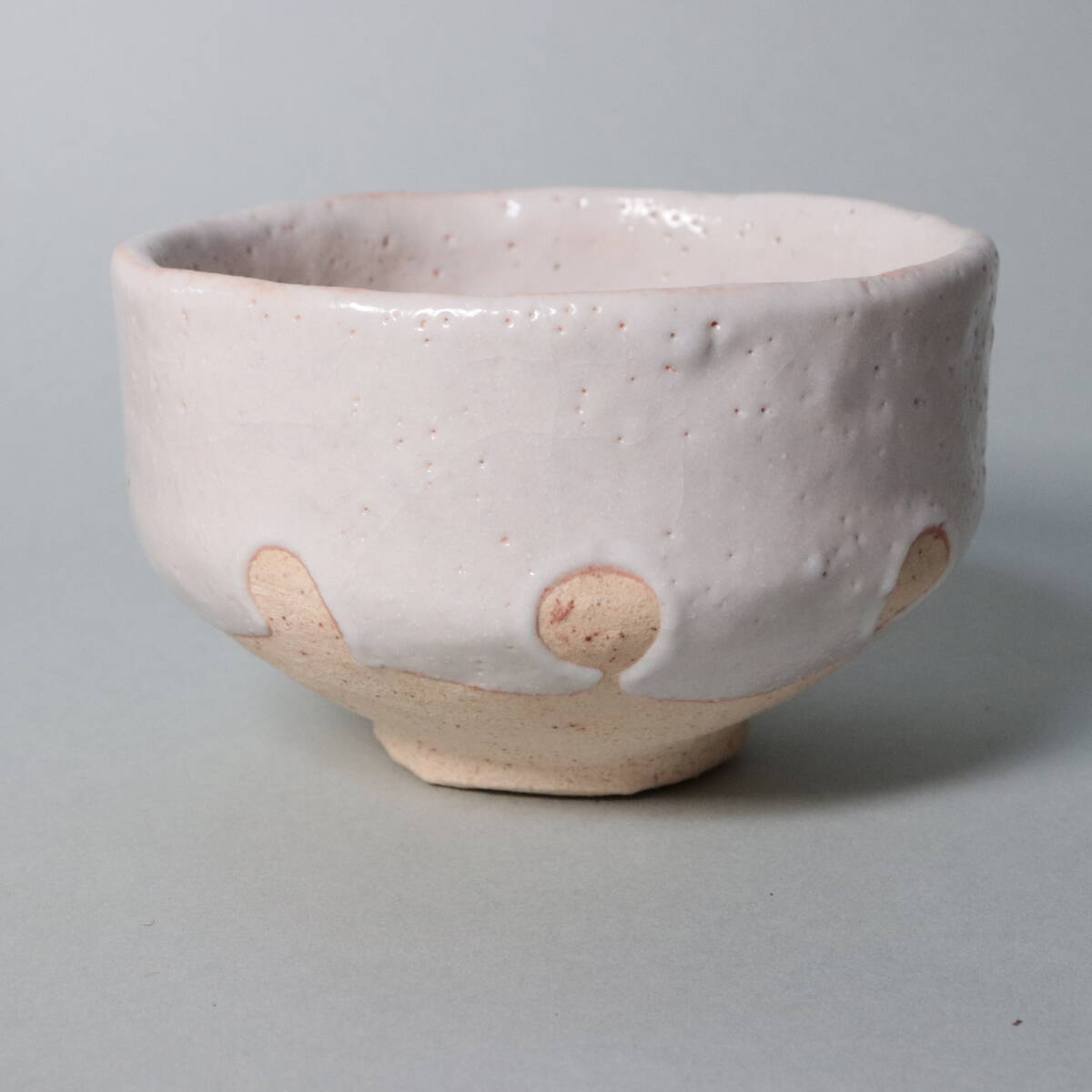 妙陶房にて制作された本作は、柔らかな曲線を持つ手捻りの造形に、やさしい白釉が施された作品で、志野を思わせる味わい深い表情を見せています。