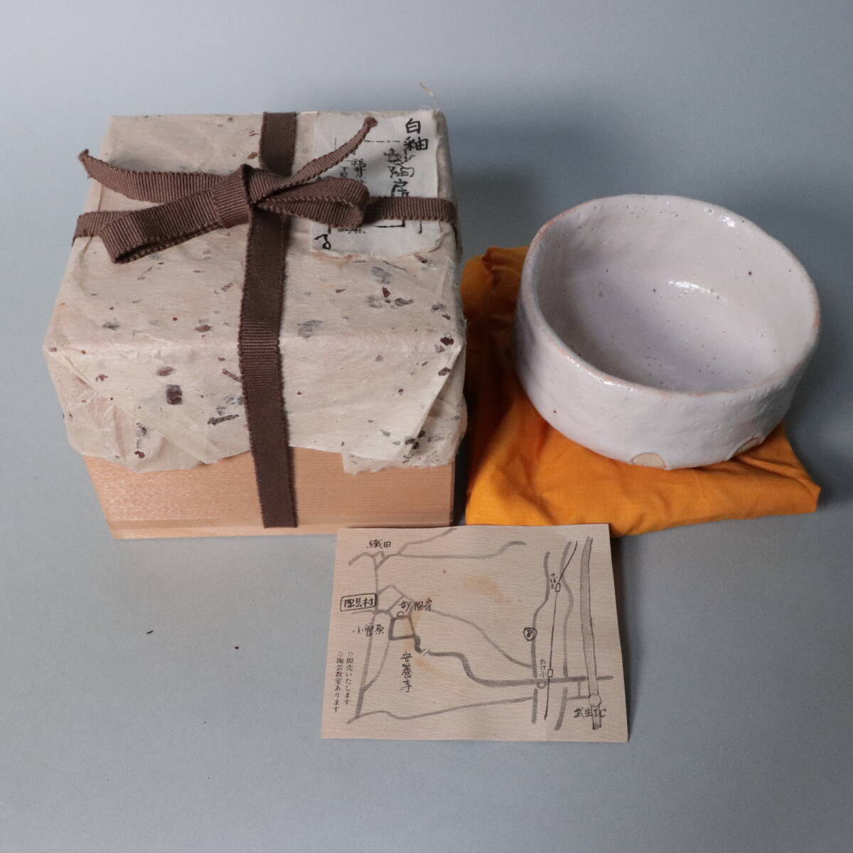 妙陶房 田井妙子 作 白釉 茶碗 福井県の作家 手捻り 茶道具 妙陶房 田井妙子 作 白釉 志野風 茶道具 女流陶芸家 共箱 F0407C4