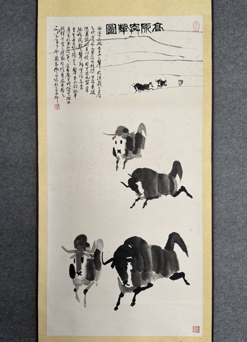 『三希堂』 中国画 古美術 [呉作人ヤク図] 掛け軸 真筆逸品 肉筆保証 中心尺寸126X61cm ABC399