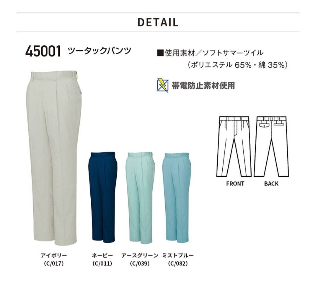3708 自重堂|ツータックパンツ|45001|アイボリー|W101㎝|春夏|新品未使用|帯電防止|綿ポリ混紡|作業着|作業ズボン|ユニセックス男女兼用