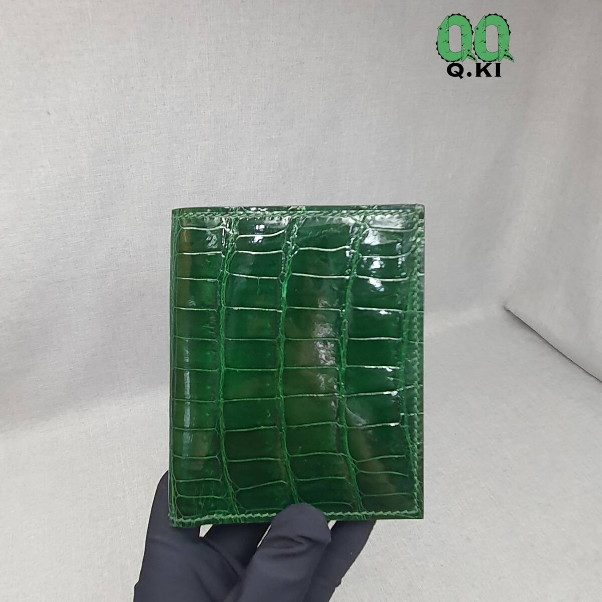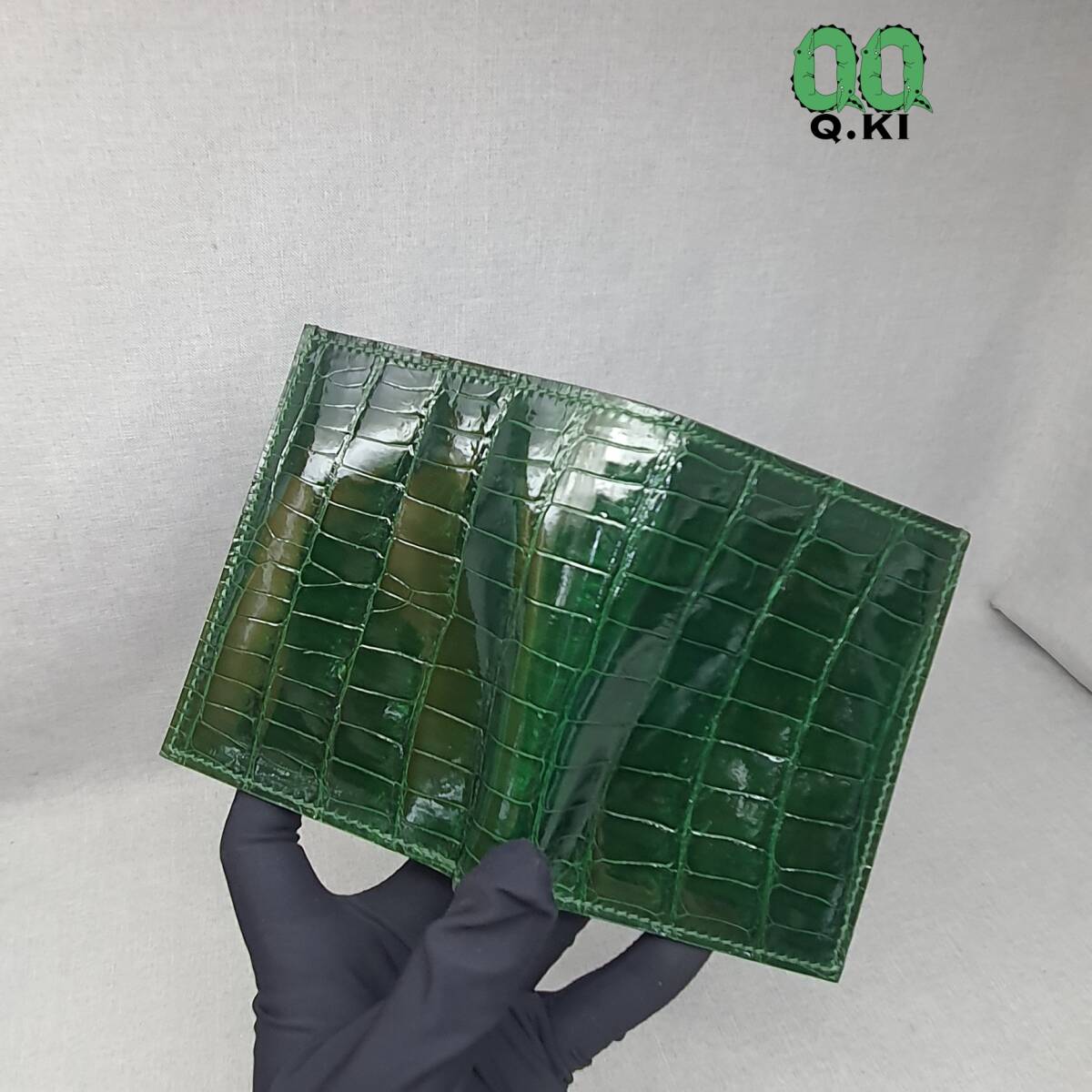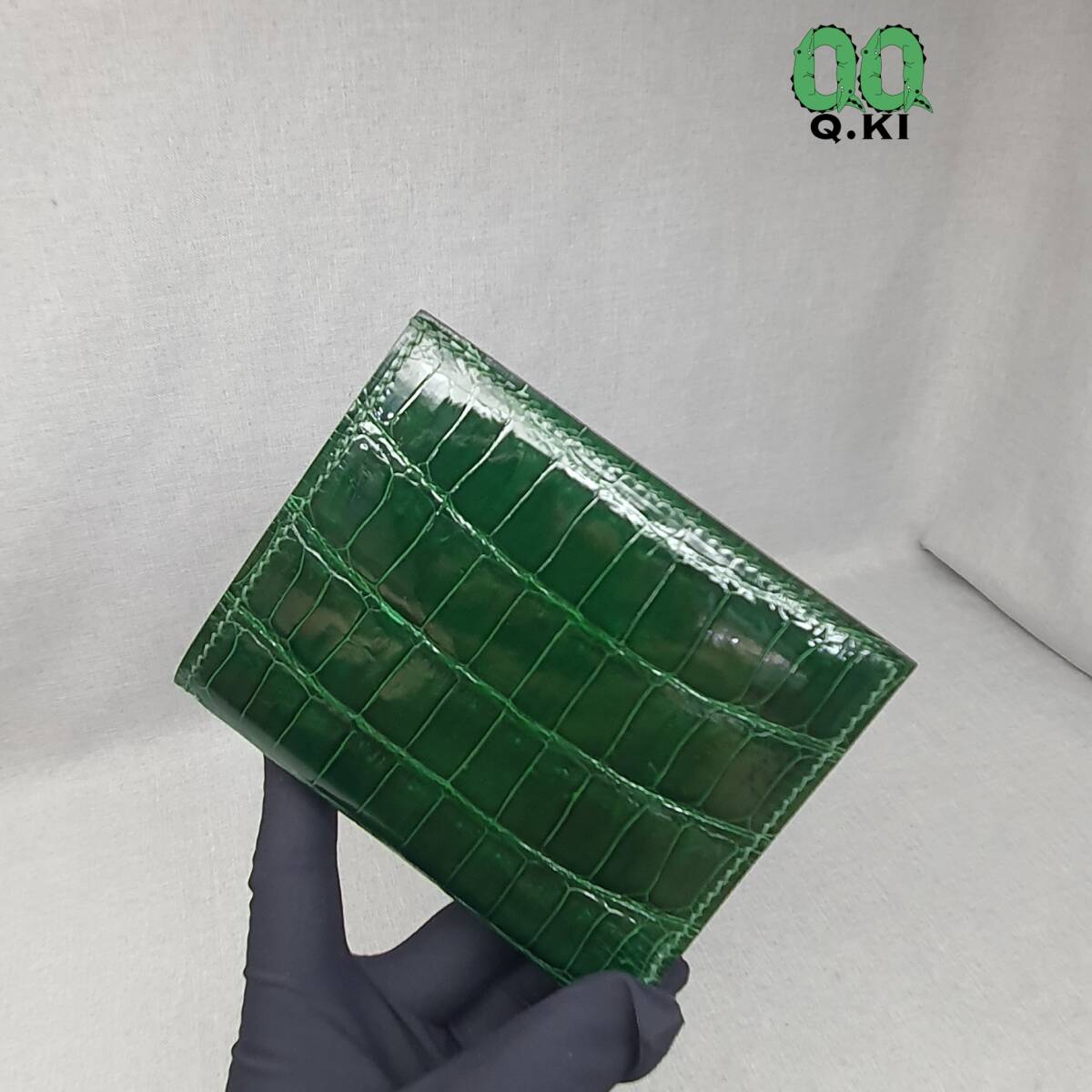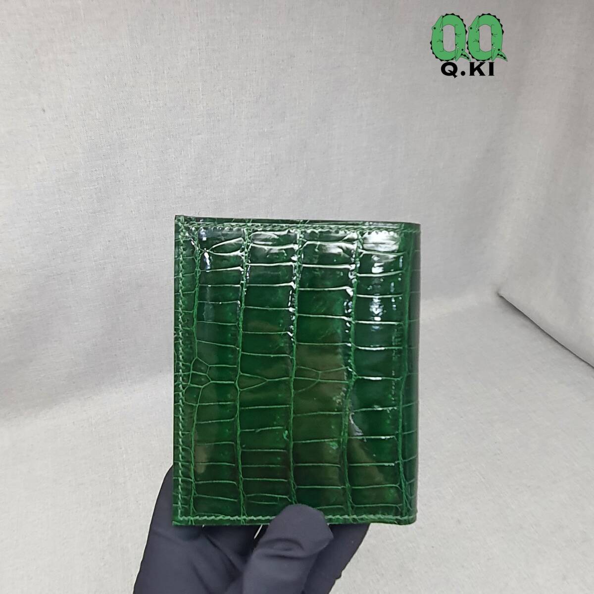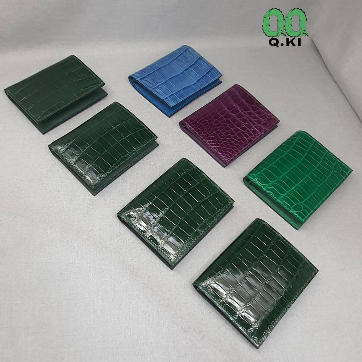 ナイルクロコダイル 財布 シャイニング加工 鰐革 ウオレット カードケース 名刺入れ 深緑