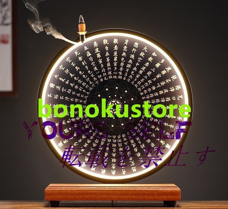 観音像 仏像  仏教美品  経文 香立 台座付き LEDライト 禅の置物 逆流香 インテリア 装飾品  仏教美術
