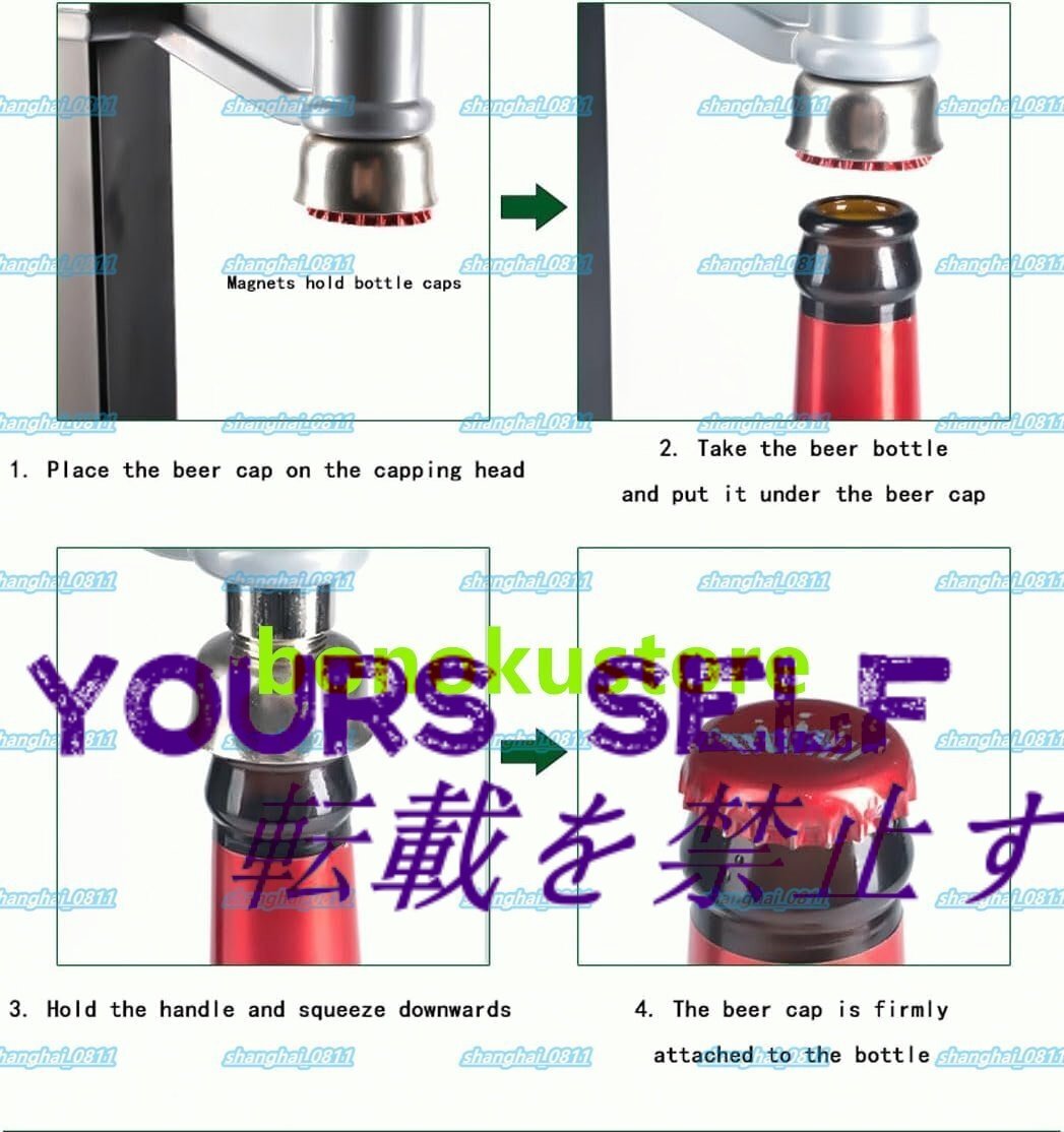 効率的なキャッピング:キャッピング装置はスプリングシステムを採用しており、操作が簡単です。 26-29mmのボトルキャップに適しており、テコ原理の機構を採用し、キャップをより便利かつ迅速に密封し、時間と労力を節約し、あらゆる種類のボトルキャップに適しています。