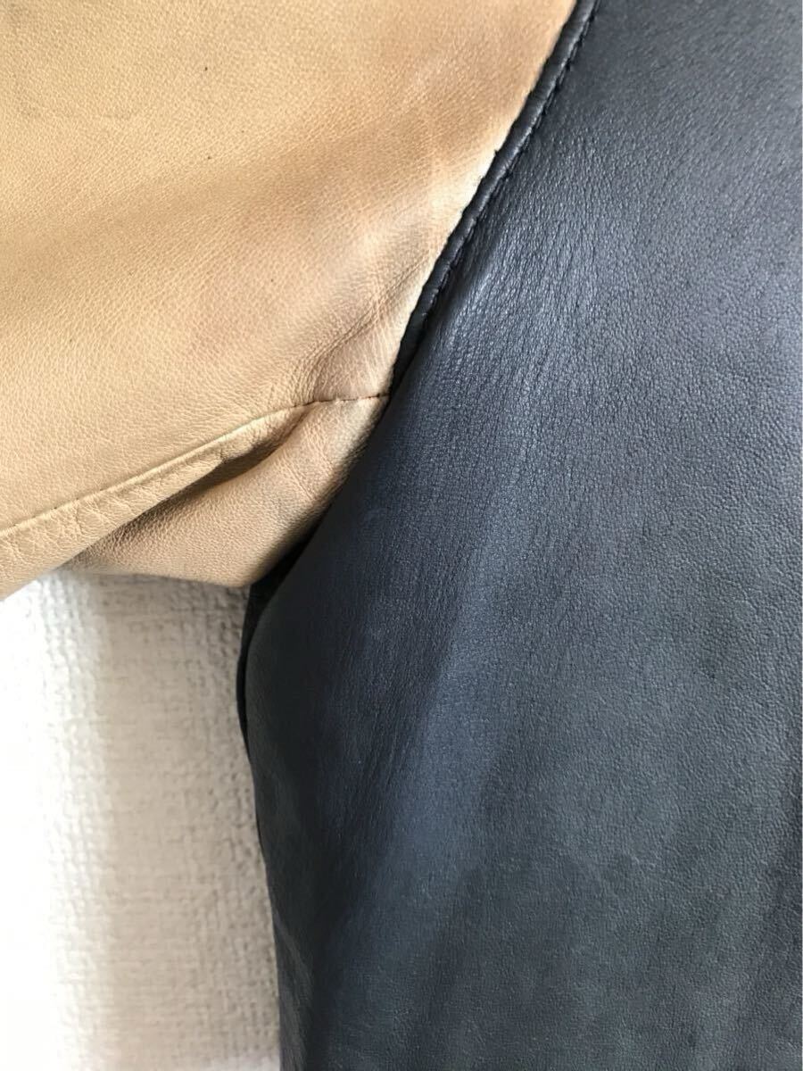裏地は良好ですが、表地に使用感があり、脇に色移りや袖に小傷もございますが着用に問題はなく、まだまだ使って頂ける商品になります。