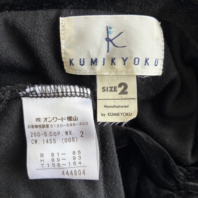 M16◇KUMIKYOKU | クミキョク ベロアノースリーブワンピース 黒 2サイズ 中古品