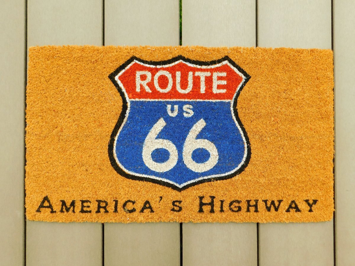 【アメリカン コイヤーマット】※《ROUTE US 66・AMERICA'S HIGHWAY-2》 アメリカン雑貨 ガレージ 玄関マット