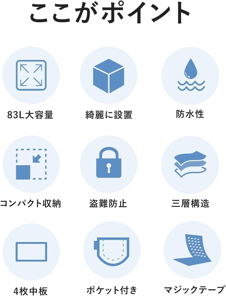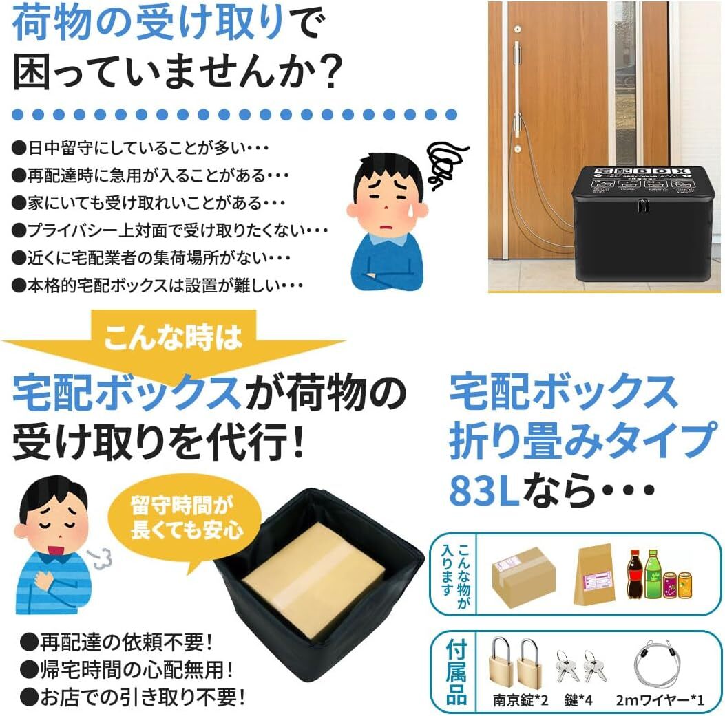 宅配ボックス 配達ボックス 置き 防水 保冷 大容量 83L ブラック 折りたたみ収納可能 盗難防止ワイヤー付き 南京錠付き