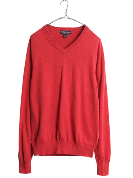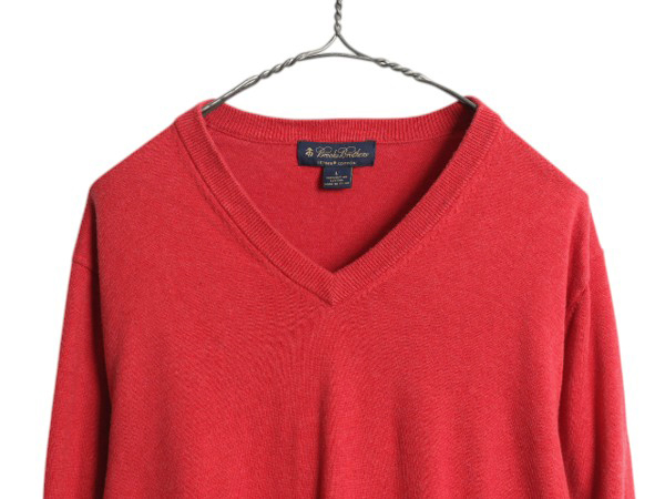 商品名 | ブルックスブラザーズ スーピマ コットン ニット セーター メンズ L / Brooks Brothers 長袖ニット Vネック ハイゲージ 無地 薄手 レッド |
