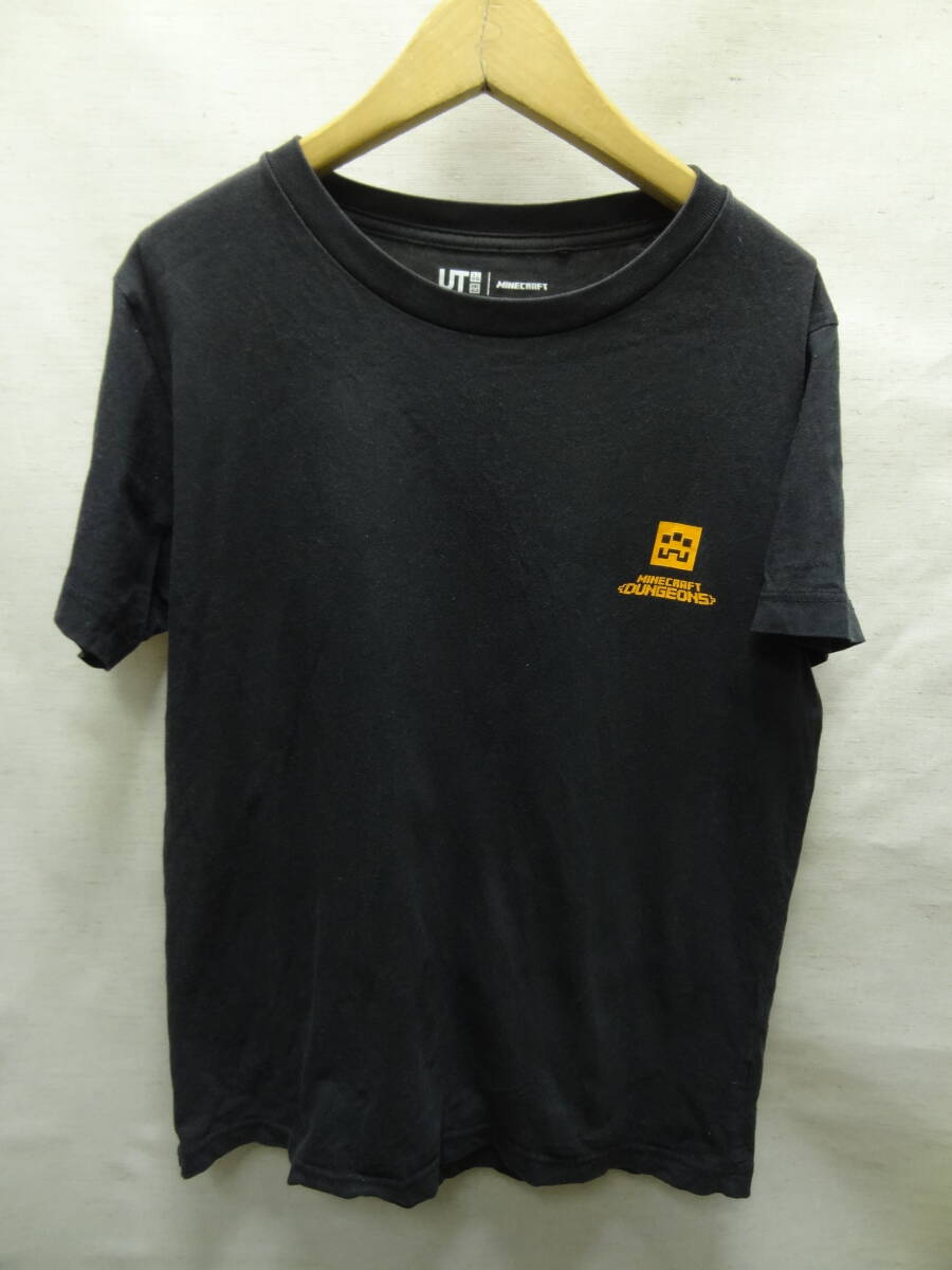 全国送料無料 ユニクロ UNIQLO X マインクラフト MINECRAFT 子供服キッズ男&女の子 半袖 黒色 両面プリント Tシャツ 160