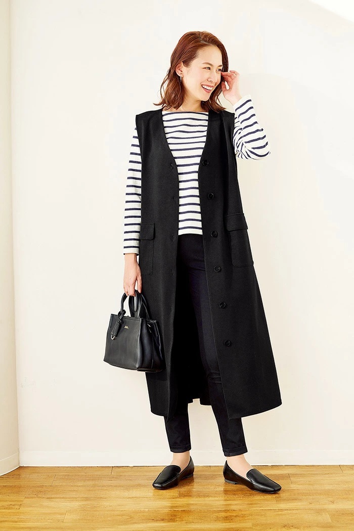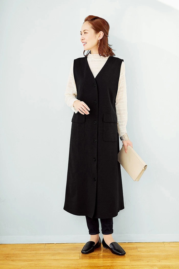 商品説明 | ・・着まわしひろがる2wayカットソー素材のロングジレ。 ・楽ちん素材なのにキチンと感抜群。 ・トレンドアイテムだって、しっかり体型カバーで安心コーデ ・柔らかストレッチ素材。 |