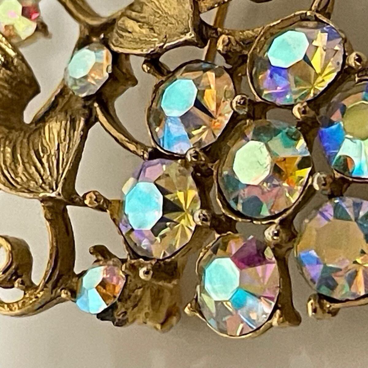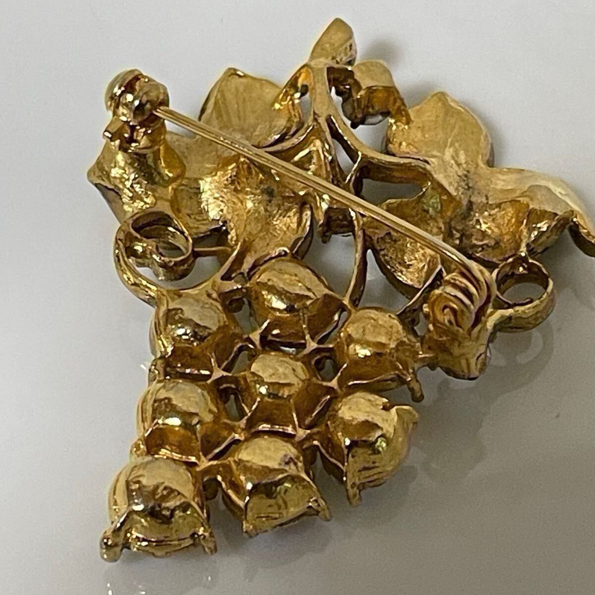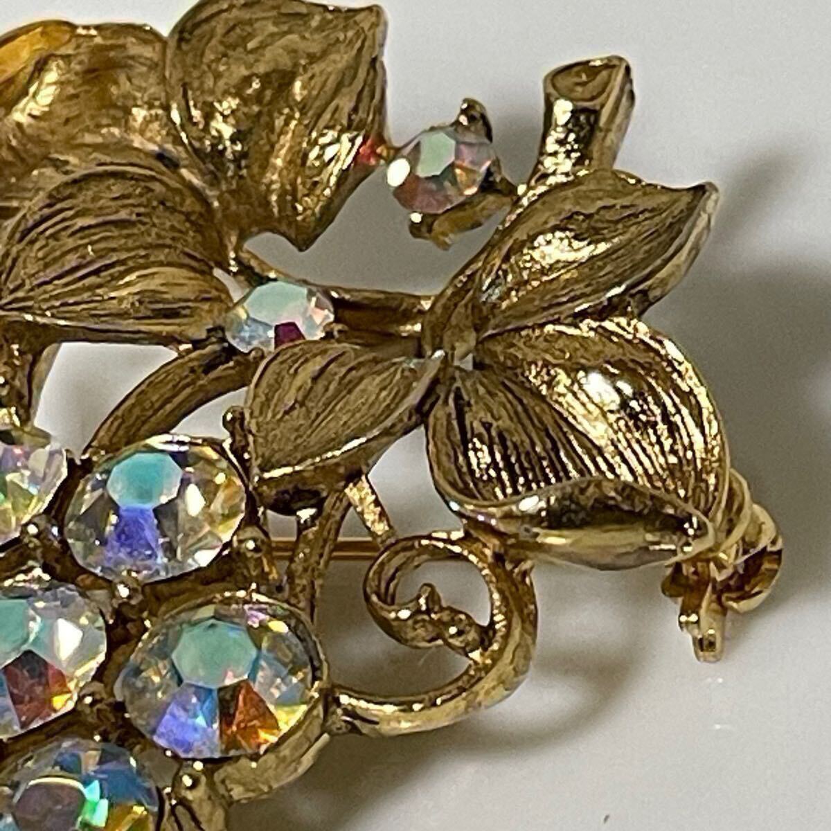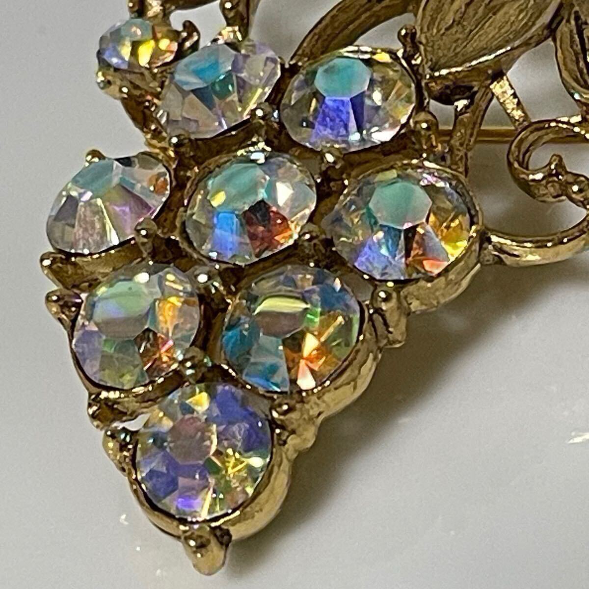 vintage オーロラ ガラス ビジュー キラキラ グレープ ぶどう 葡萄 ゴールドカラー ブローチ ラインストーン レトロ アクセサリー