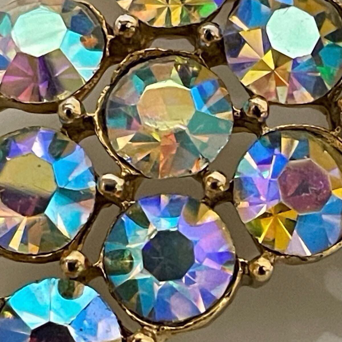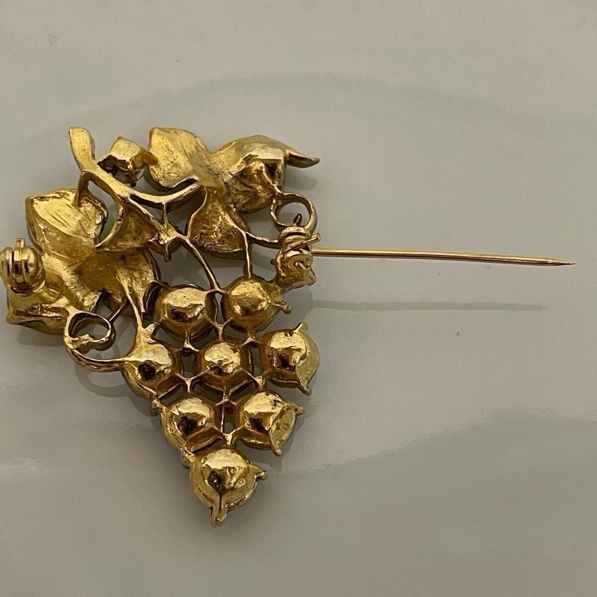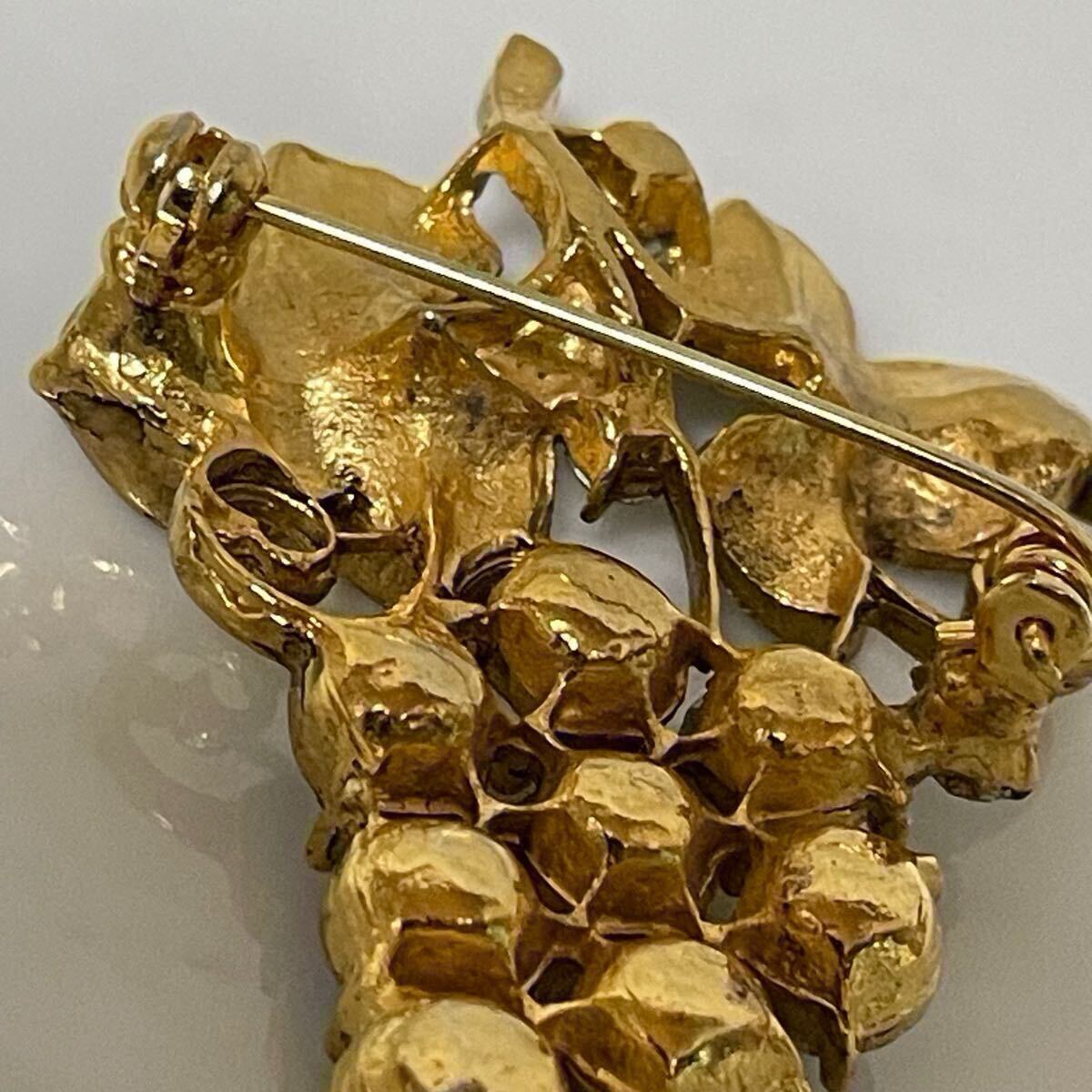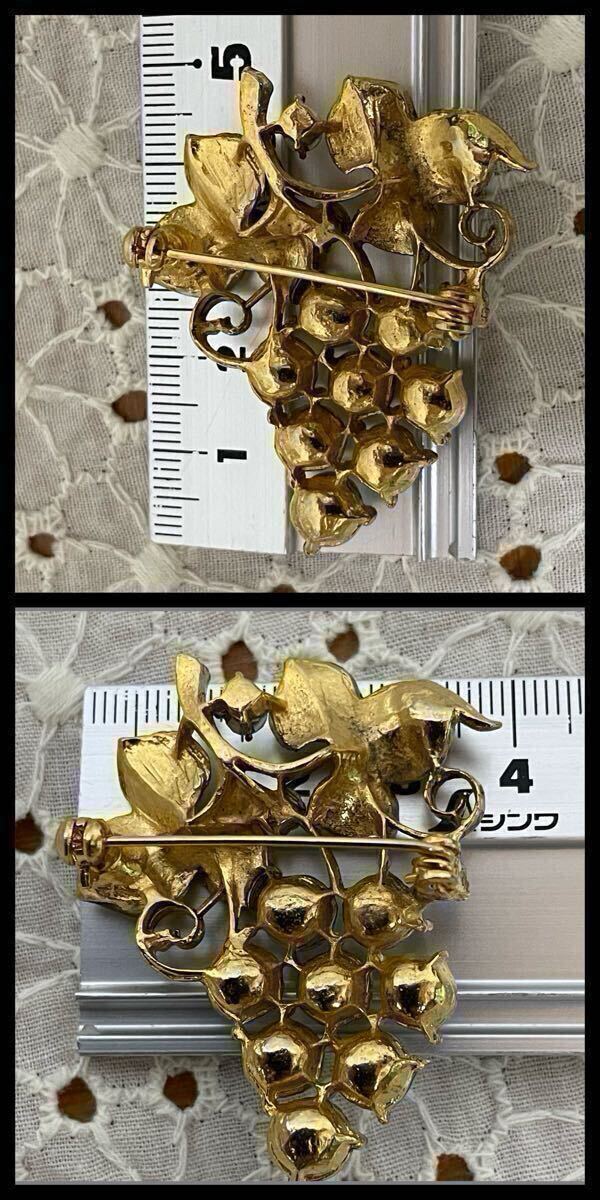 vintage オーロラ ガラス ビジュー キラキラ グレープ ぶどう 葡萄 ゴールドカラー ブローチ ラインストーン レトロ アクセサリー