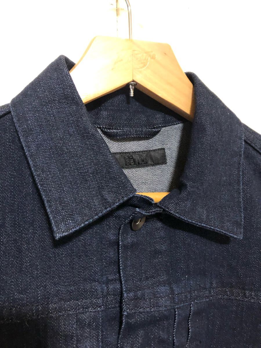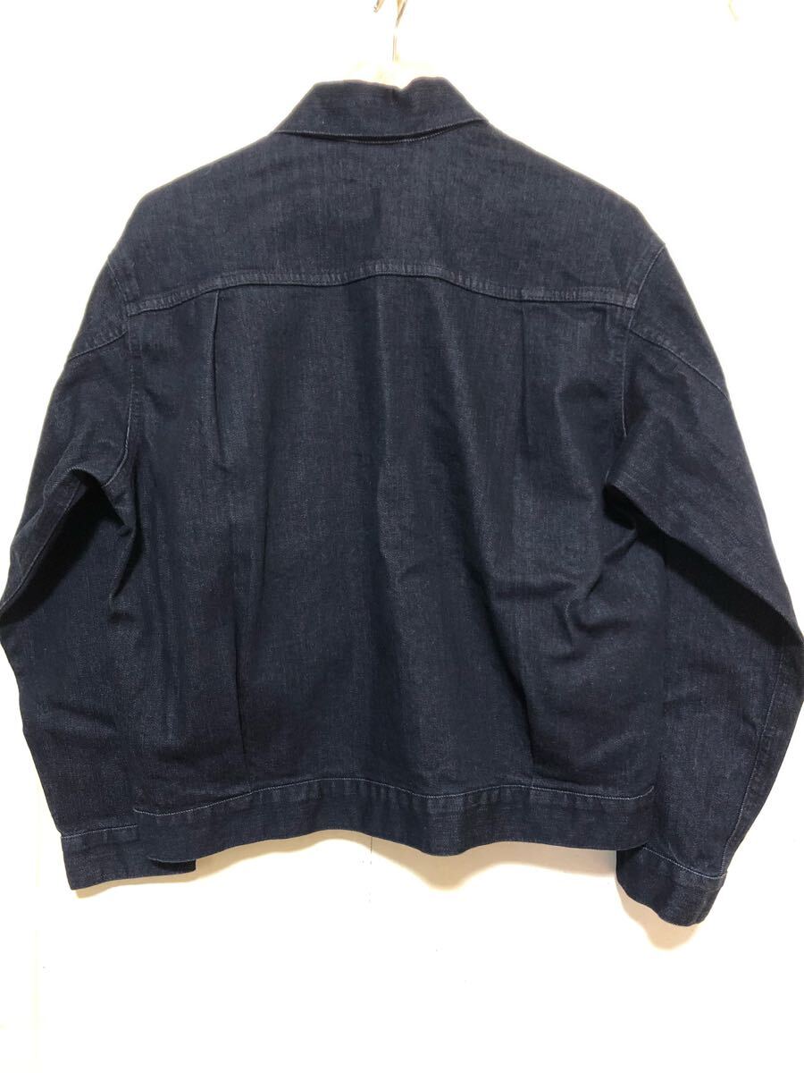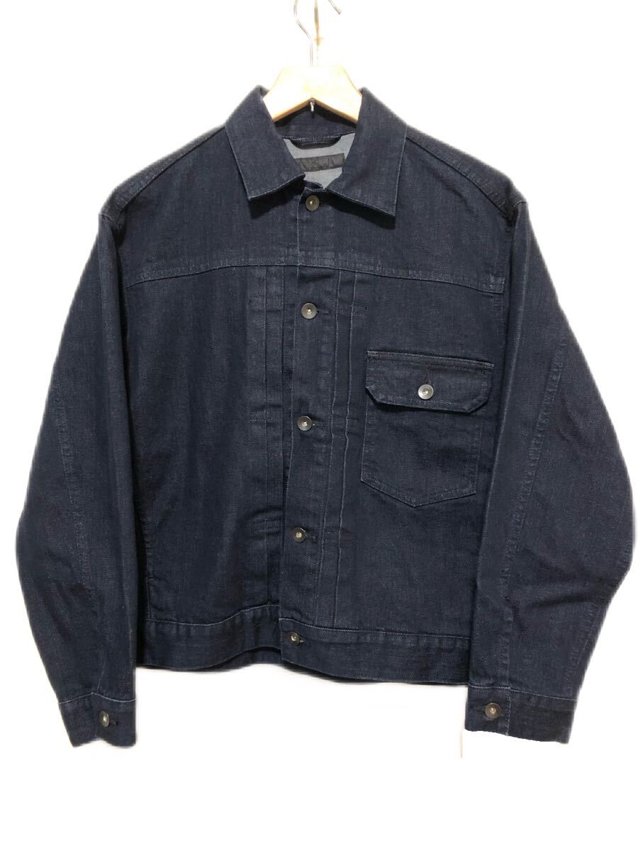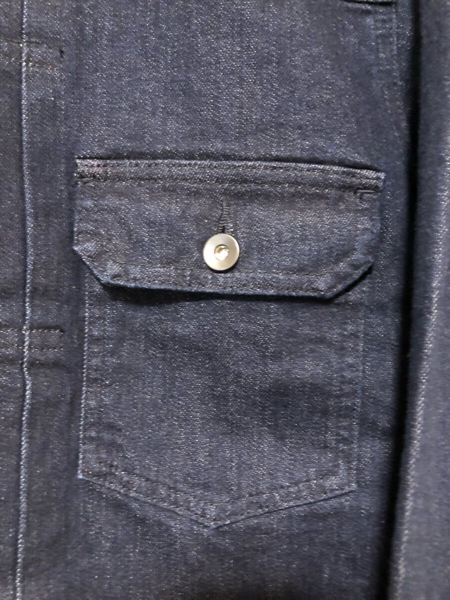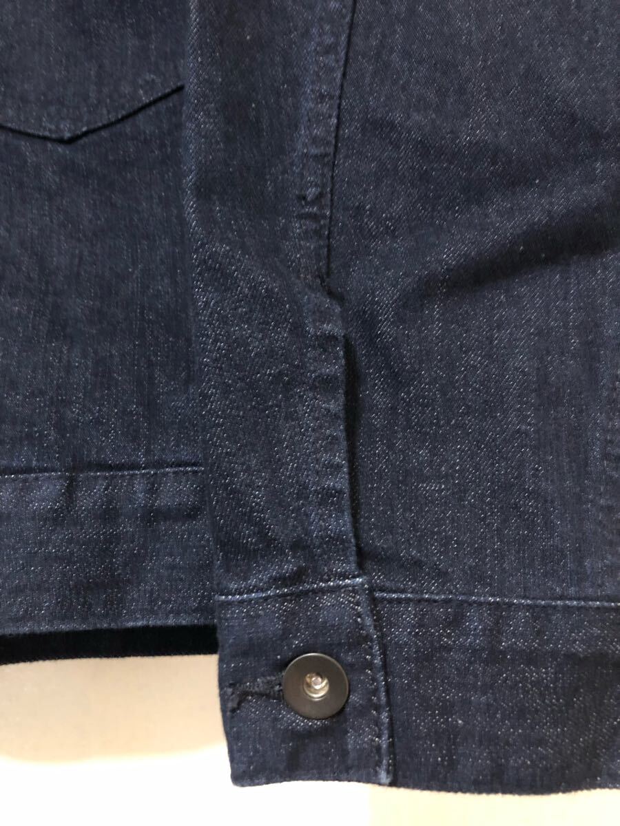 ダークネイビーのカジュアルジャケット、ボタンとポケット付きでスタイリッシュ。