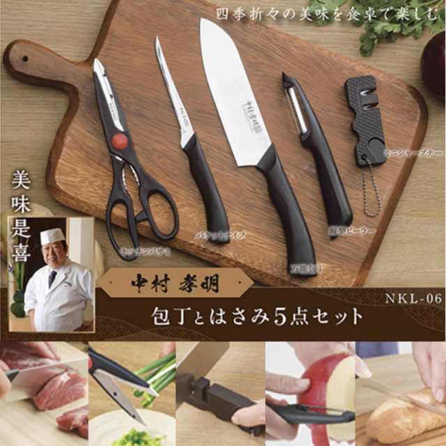 中村孝明 包丁とはさみ 5点セット NKL-06/0851x1個 包丁・ハサミ・ピーラー・バケット・シャープナー
