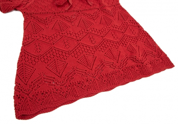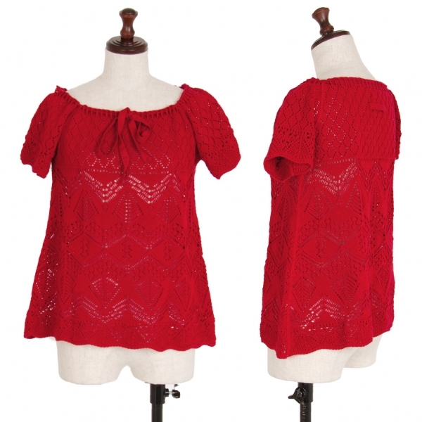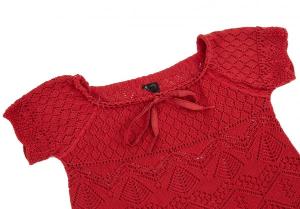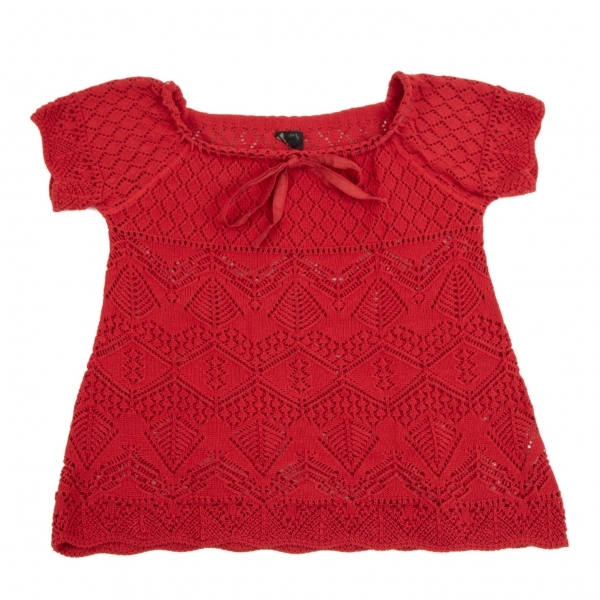 ジャンポールゴルチエ ファムJean Paul GAULTIER FEMME コットンリボンデザインカギ編みニット半袖トップス 赤40 |