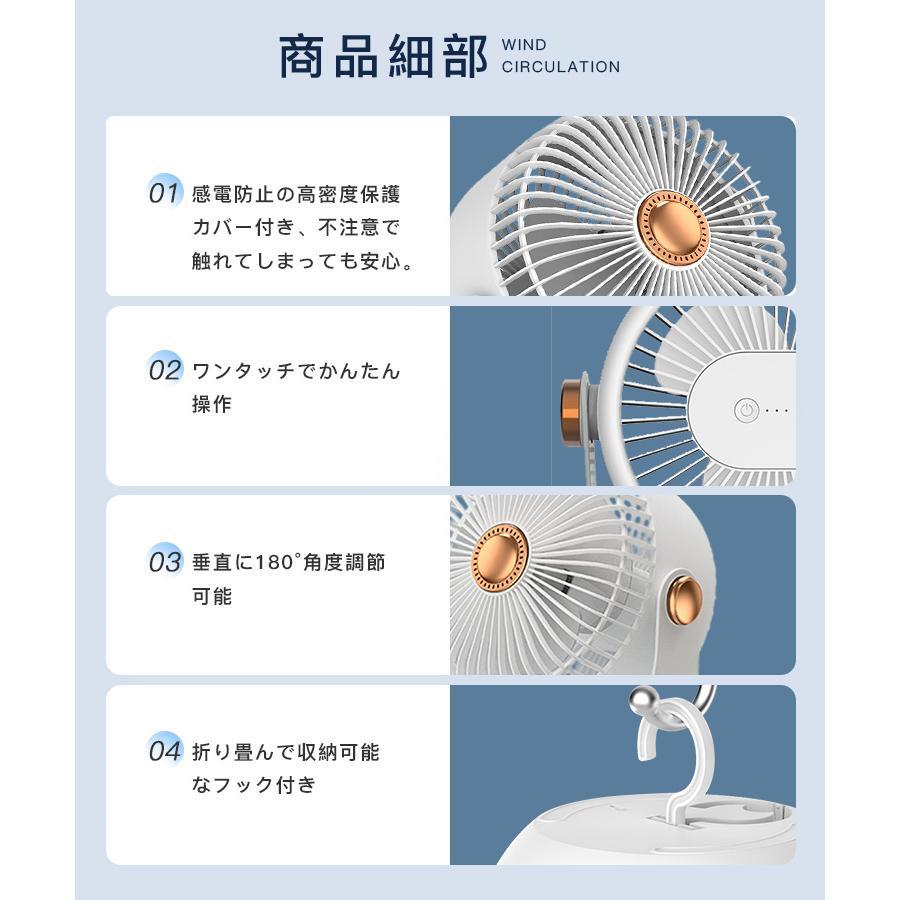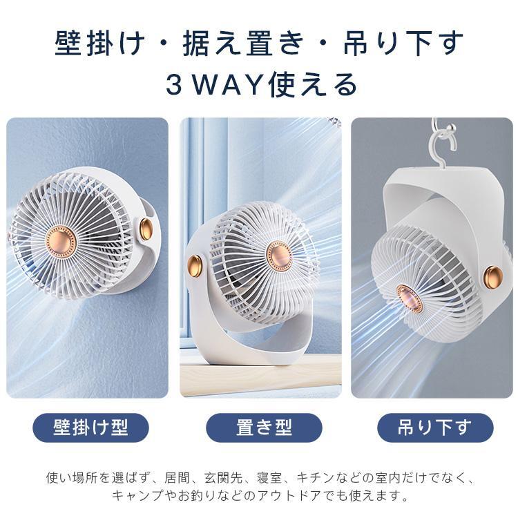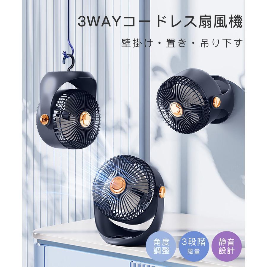 2025最新 卓上扇風機 静音設計 3段階風量 壁掛け 置き 吊り下す コードレス 小型 扇風機 大容量 換気 空気循環 usb 省エネ 180°角度調整