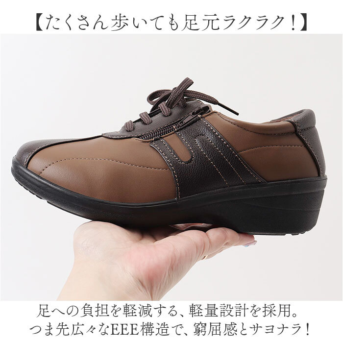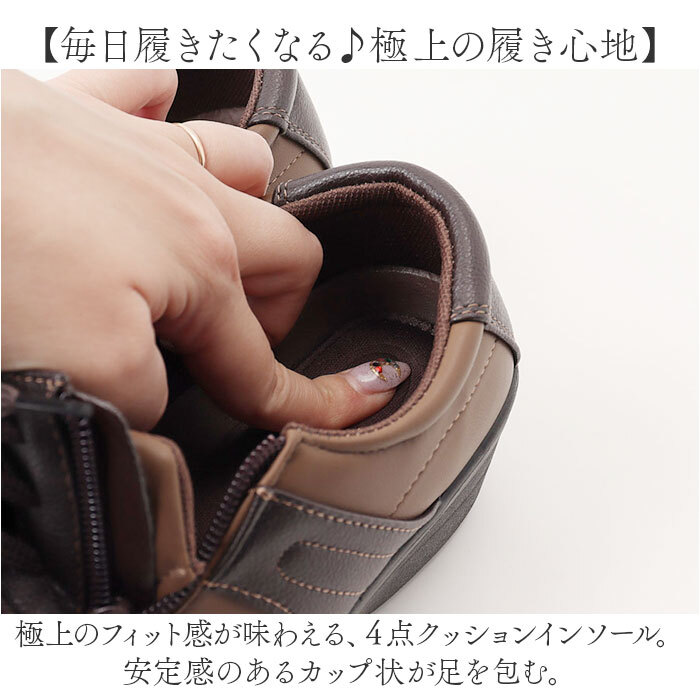 | 商品説明 | ・・【こだわりの4点クッションでFIT☆】 ・軽量&ゆったりEEEの優しい作り。「PARK AVENUE コンフォートシューズ」が登場。 ・【毎日履きたくなる♪極上の履き心地】 ・極上のフィット感が味わえる、4点クッションインソール。安定感のあるカップ状が足を包む。 ・【たくさん歩いても足元ラクラク!】 ・足への負担を軽減する、軽量設計を採用。つま先広々なEEE構造で、窮屈感とサヨナラ! ・【踏み出しやすいアウトソール】 ・ぺたんこよりも歩きやすい、ほどよい高さのソール。地面をしっかりグリップし、滑りにくい◎ ・【スニーカーよりもおしゃれ☆】 ・カジュアルだけど上品さのある、レザー調のデザインがGOOD。パンツにもスカートにもマッチ。 ・【着脱しやすいのがポイント】 ・履き口には、サイドゴアとファスナーを搭載。靴ひもを結び直さなくても、簡単に着脱可能。 |