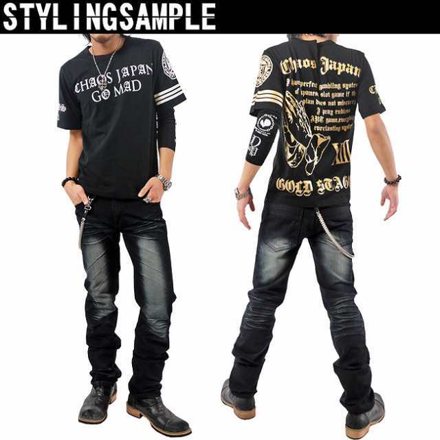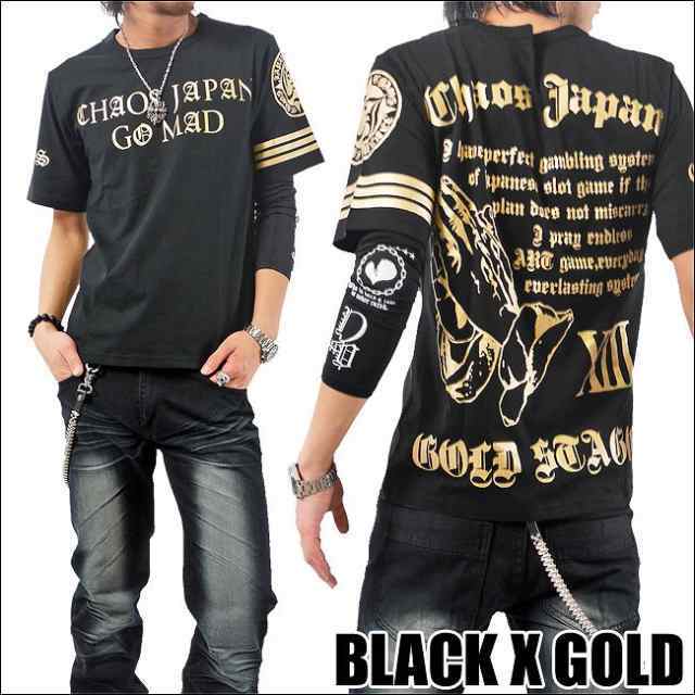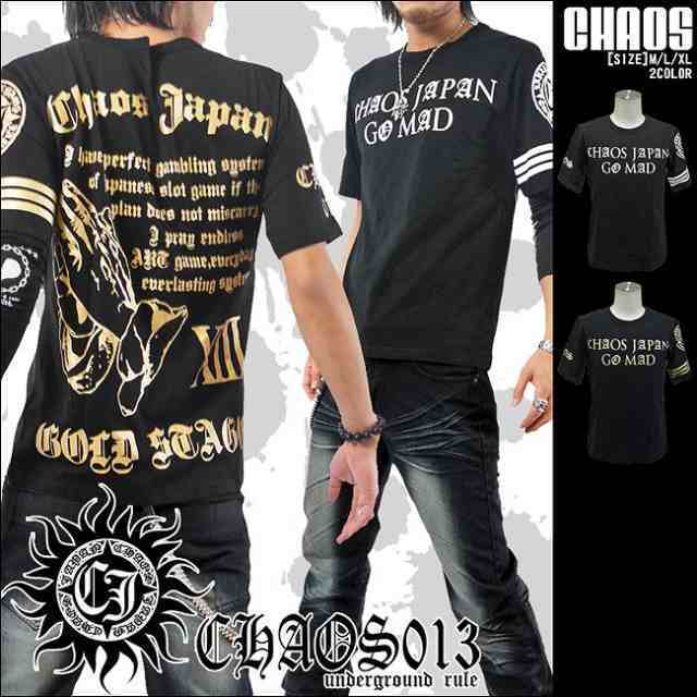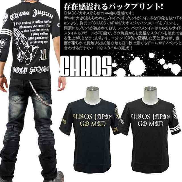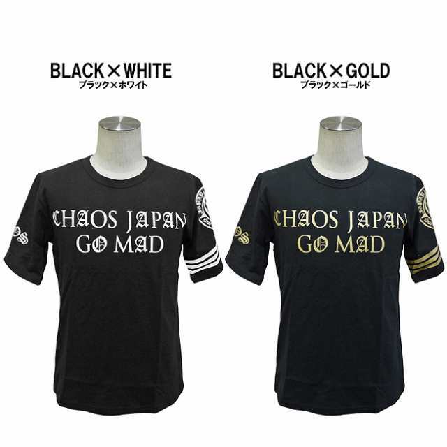 CHAOS JAPAN GO MADプリント 腕 サイド バック 半袖Tシャツ ch-ry-2013 新品ブラック×ゴールド L