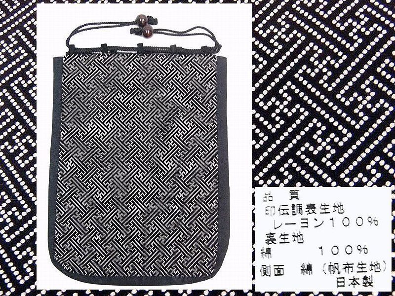 印田風 信玄袋 黒色・サヤ型 日本製 未使用・新品 | |||