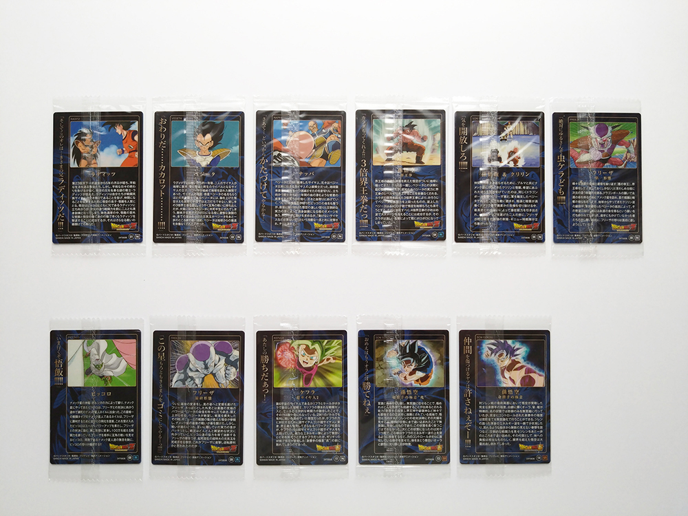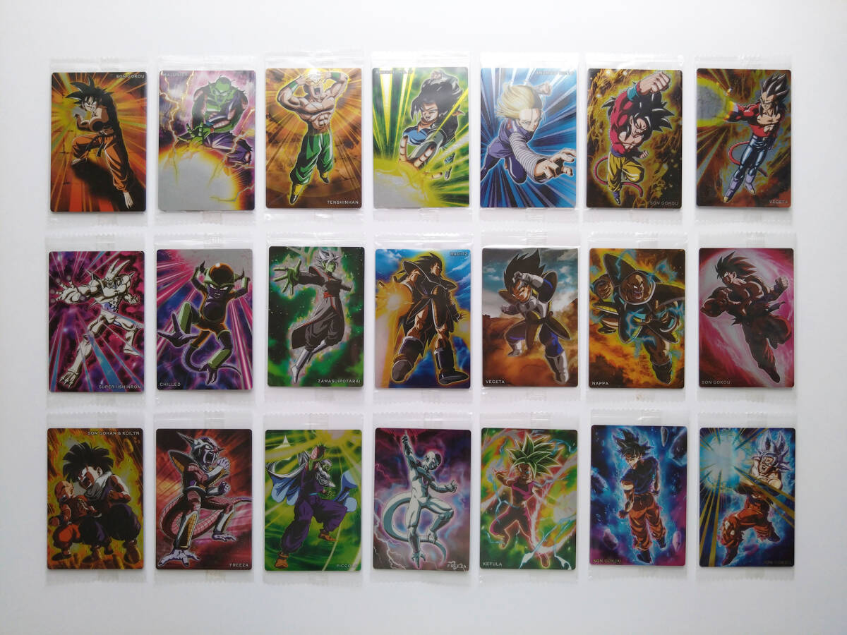 2018年10月、2019年4月に全国のスーパー、コンビニにて販売されたドラゴンボールUNLIMITED、Vol.2、vol.3のカードに21枚セットなります。