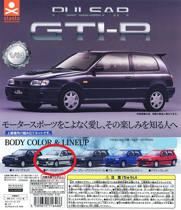 | <新品> スタンド・ストーンズ 日産 パルサーGTI-R(N14)編 マーブルホワイト 1/64サイズ ※カプセル無し | ||||||||||||||||||||
