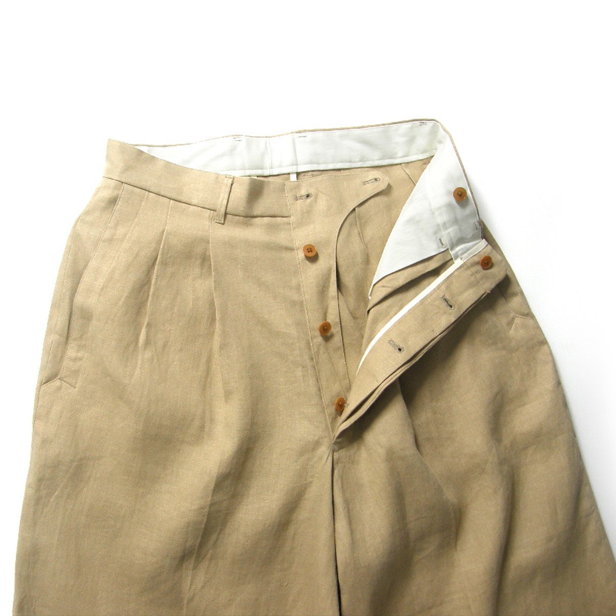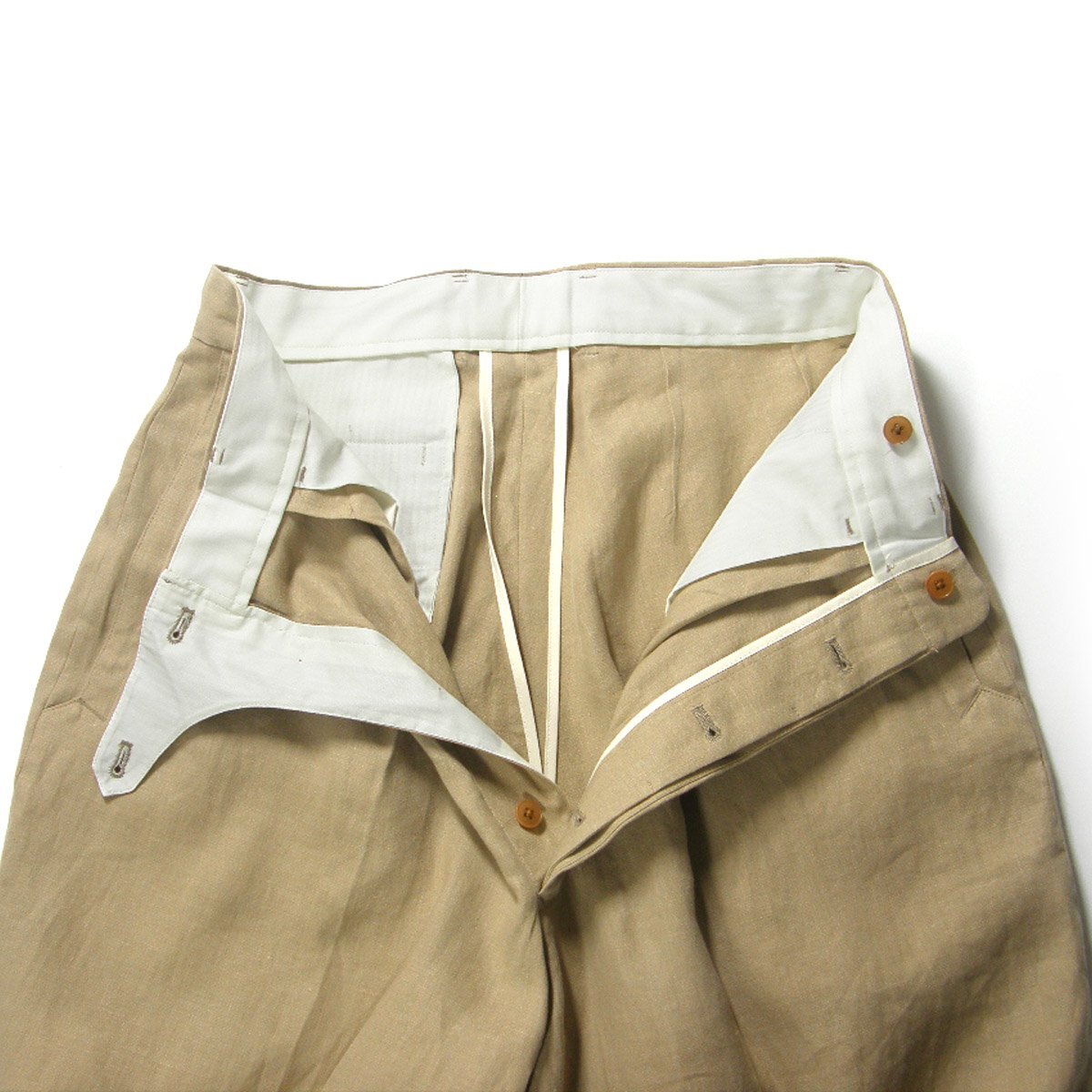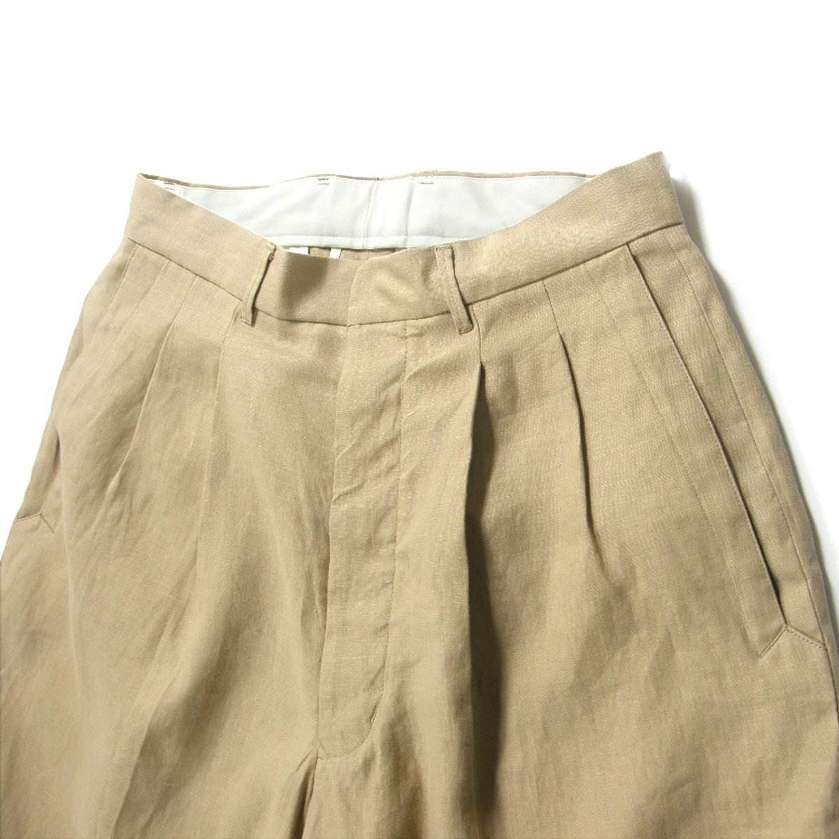 素材は強度のあるヘンプ素材をワイドシルエットのドレープを生かせるよう、出来る限り柔らかくナチュラルに仕上がり。