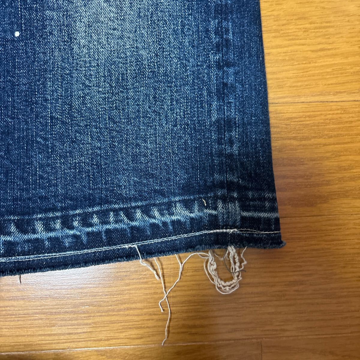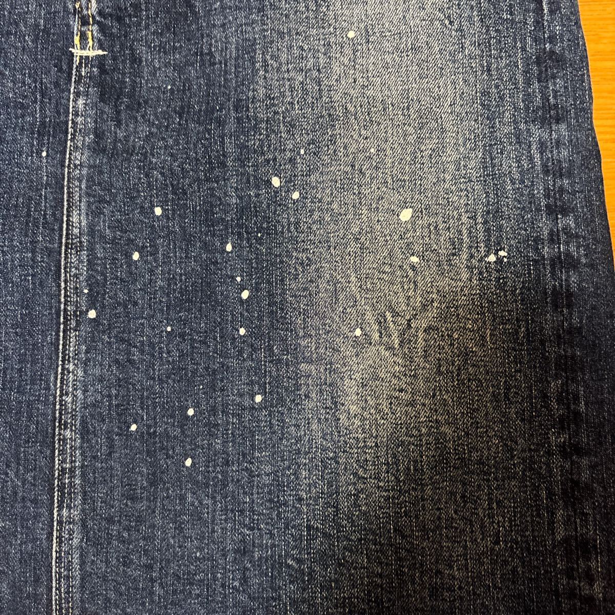 ●裾は切りっぱなし、前ペンキの飛び散り、色落ち等ダメージ加工されています。