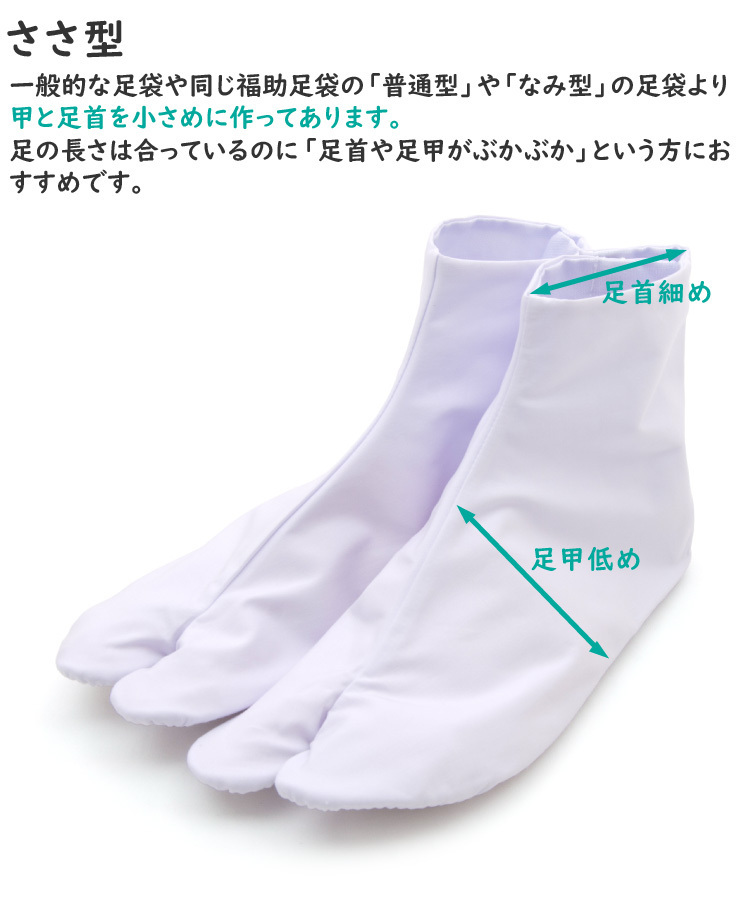 | 商品説明 | ・日本製 ・老舗福助の、のびる綿キャラコ足袋 ・4枚こはぜ ・ささ型 |