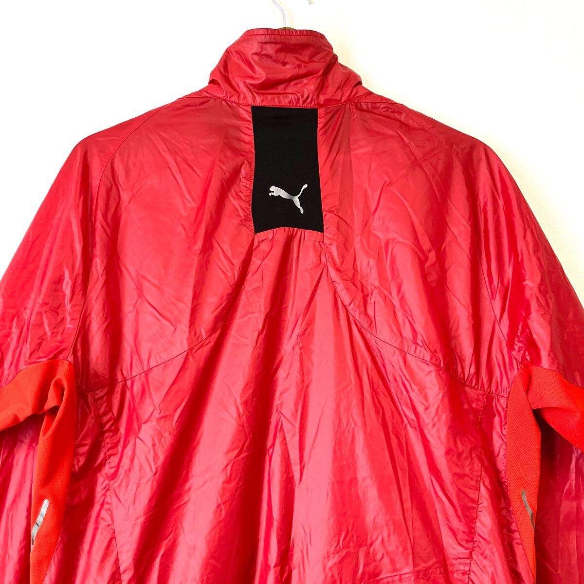 PUMA のジップアップブルゾンです。携帯に便利なポケッタブル仕様!両サイドはストレッチの効いたメッシュ素材、ポケットはジップ付きです◎さっと羽織りやすくスポーツやアウトドアにオススメです!襟元の小さな汚れなど若干の着用感がございますが、まだまだご着用いただけるお品です◎